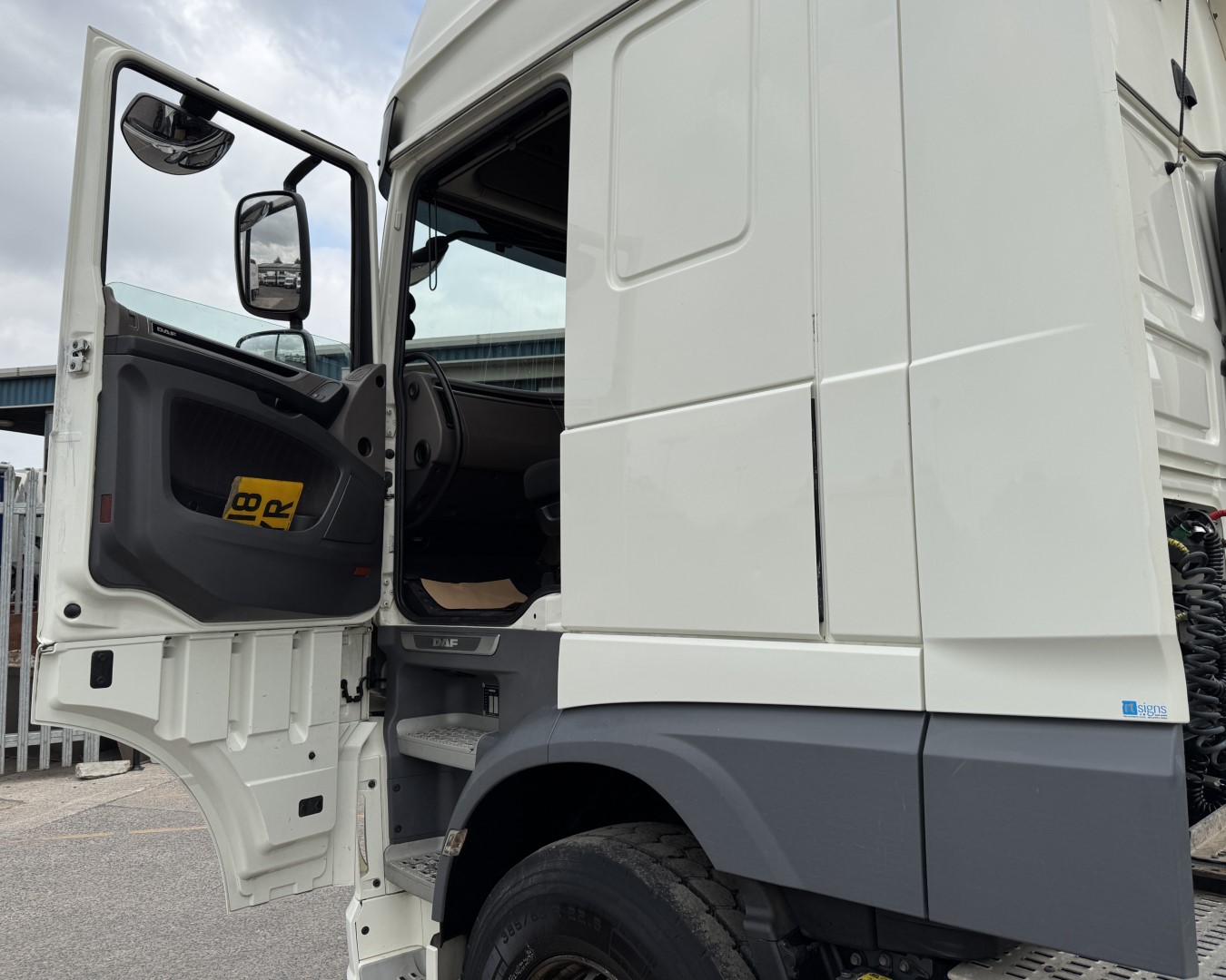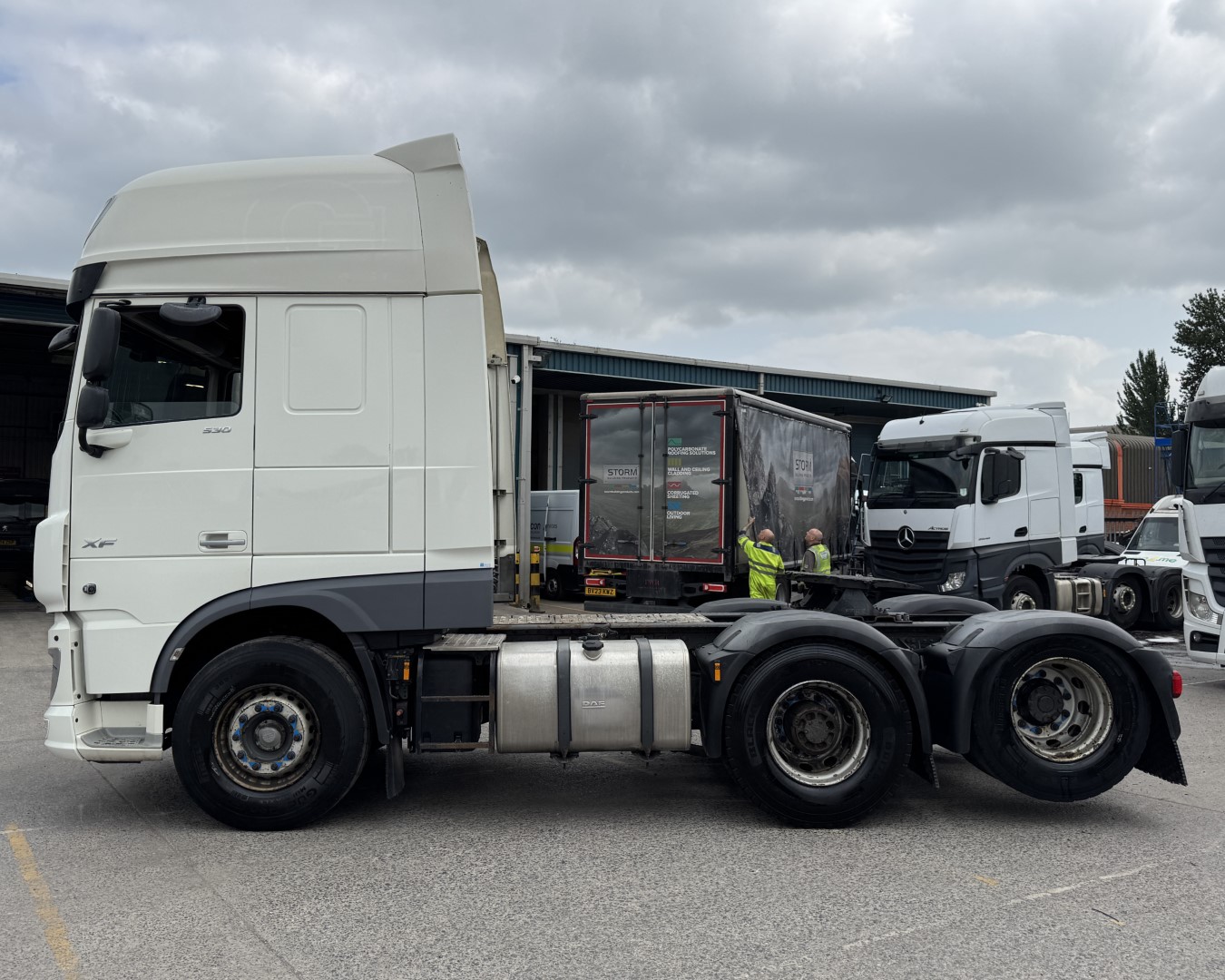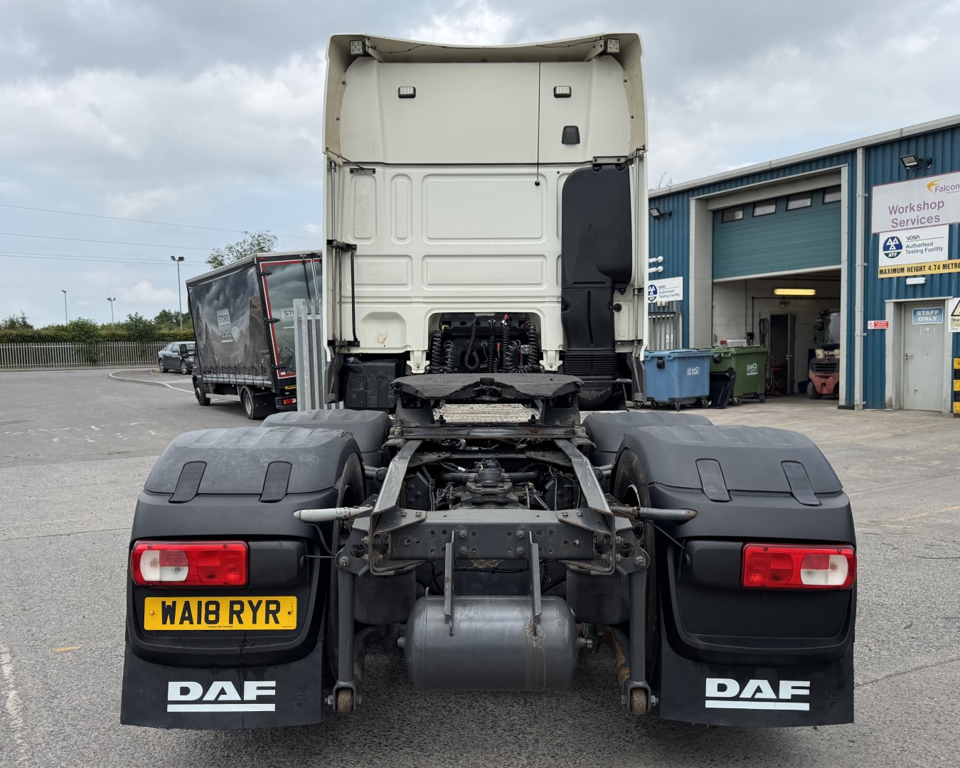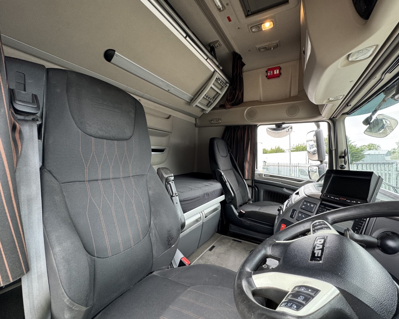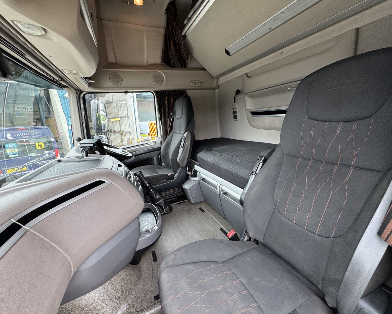 2018 (18) DAF XF 530 FTS Super Space Cab (16-Speed Manual) 80 Tonne 6×2 T/Unit, 12902cc engine, Special types GTW 80,000kg, MX engine brake, 16-speed manual gearbox, High roof double bunk, Fitted fridge, Fitted DAF Microwave, Air conditioning, JOST cast iron 5th wheel coupling, Electronic & heated side mirrors, Electric windows, Cruise control + speed limiter, Bluetooth with handsfree calling, Heated windscreen, Trip computer.
