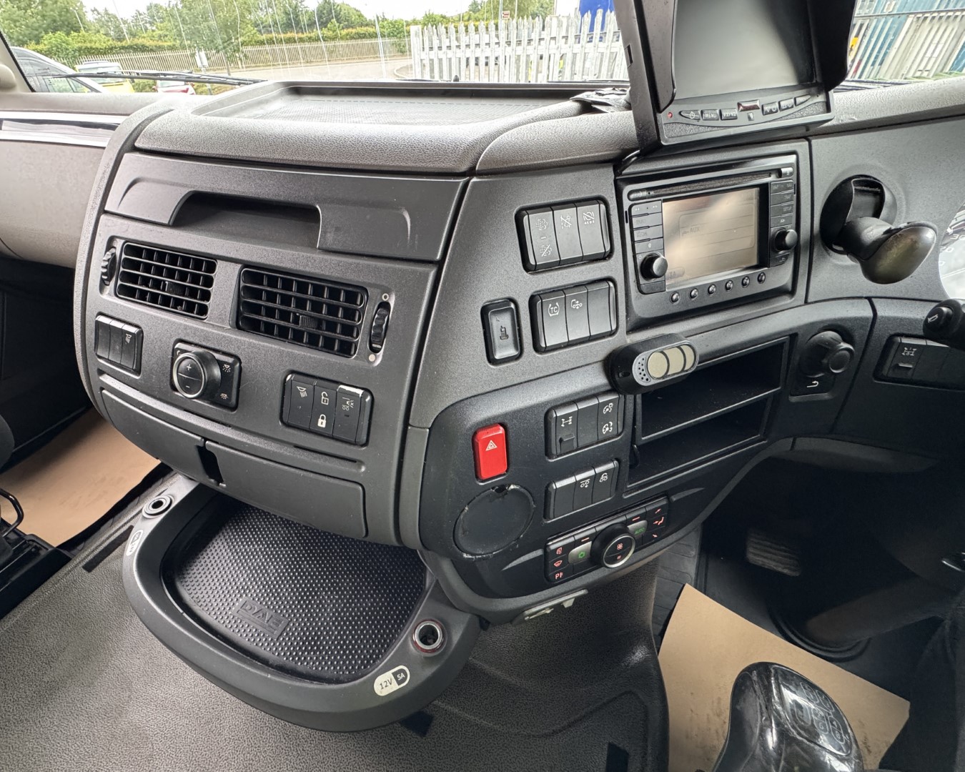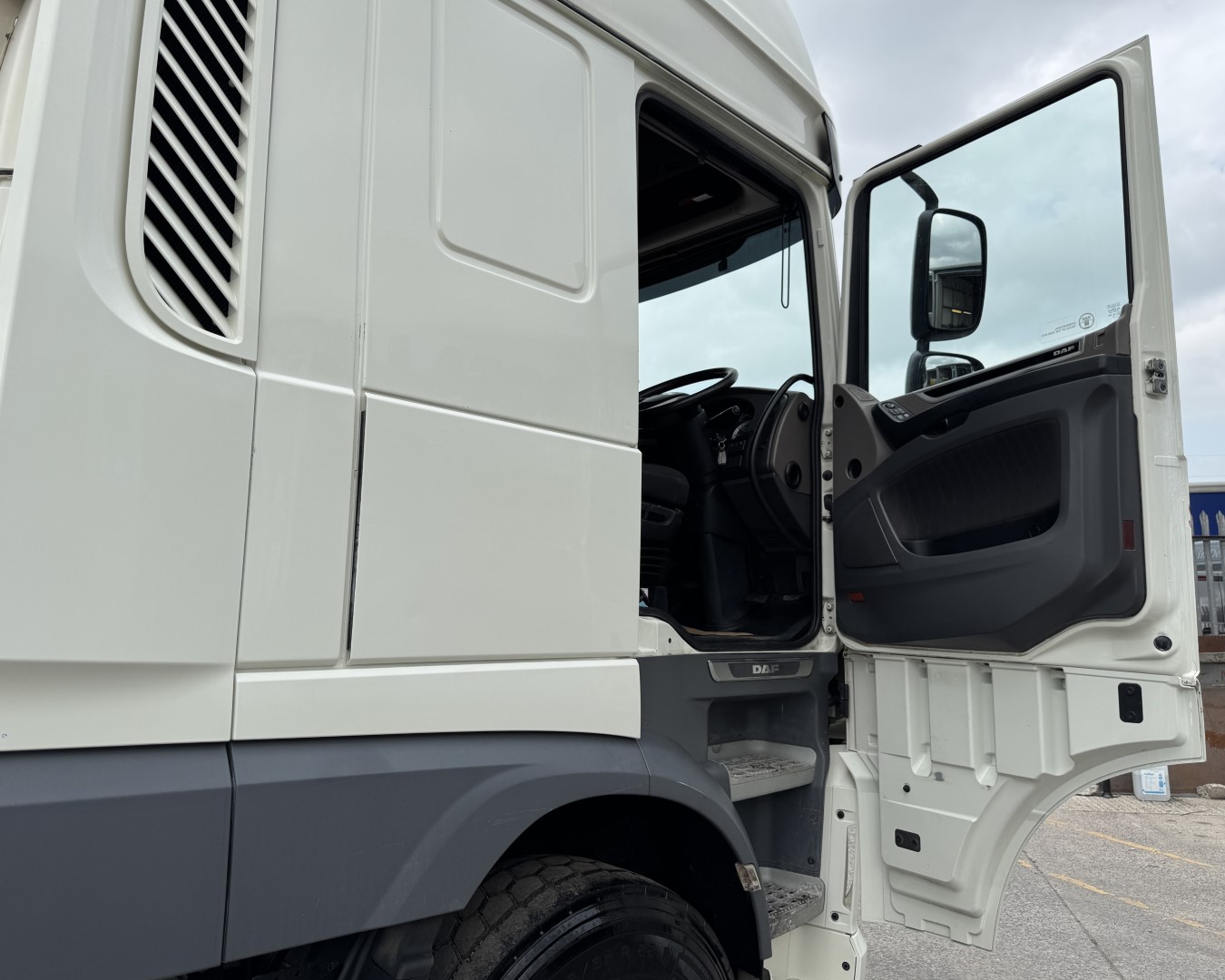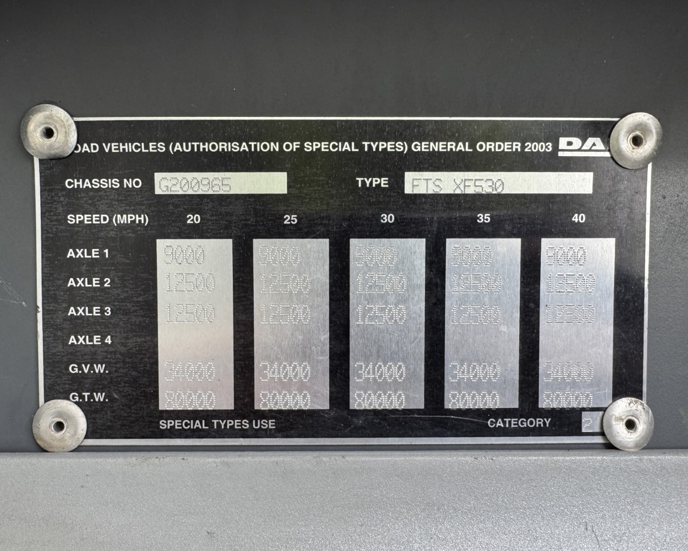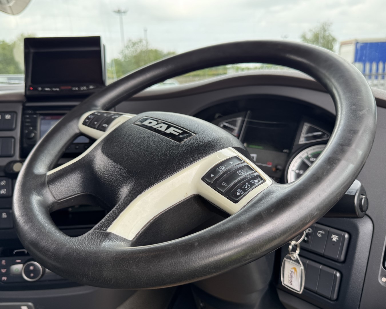2018 (18) DAF XF 530 FTS Super Space Cab (16-Speed Manual) 80 Tonne 6×2 T/Unit, 12902cc engine, Special types GTW 80,000kg, MX engine brake, 16-speed manual gearbox, High roof double bunk, Fitted fridge, Fitted DAF Microwave, Air conditioning, JOST cast iron 5th wheel coupling, Electronic & heated side mirrors, Electric windows, Cruise control + speed limiter, Bluetooth with handsfree calling, Heated windscreen, Trip computer.