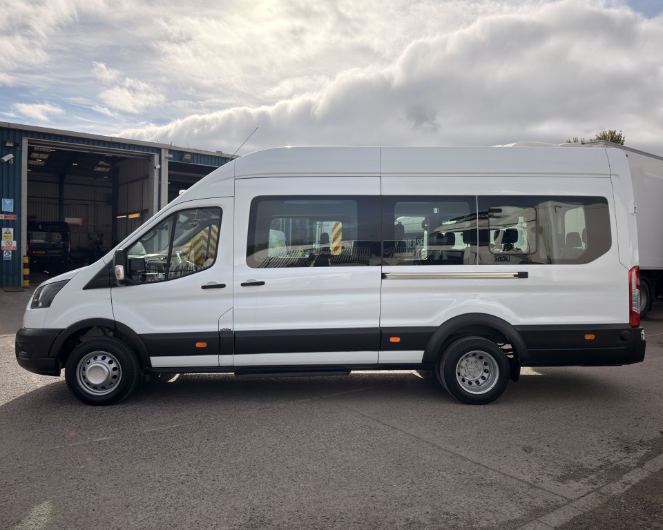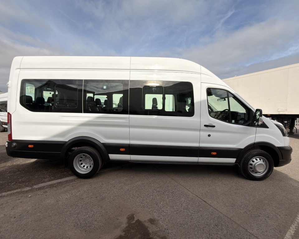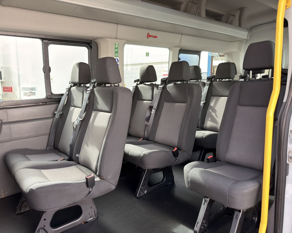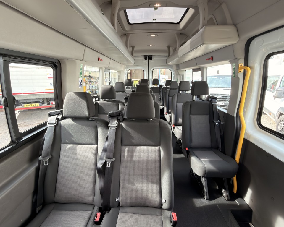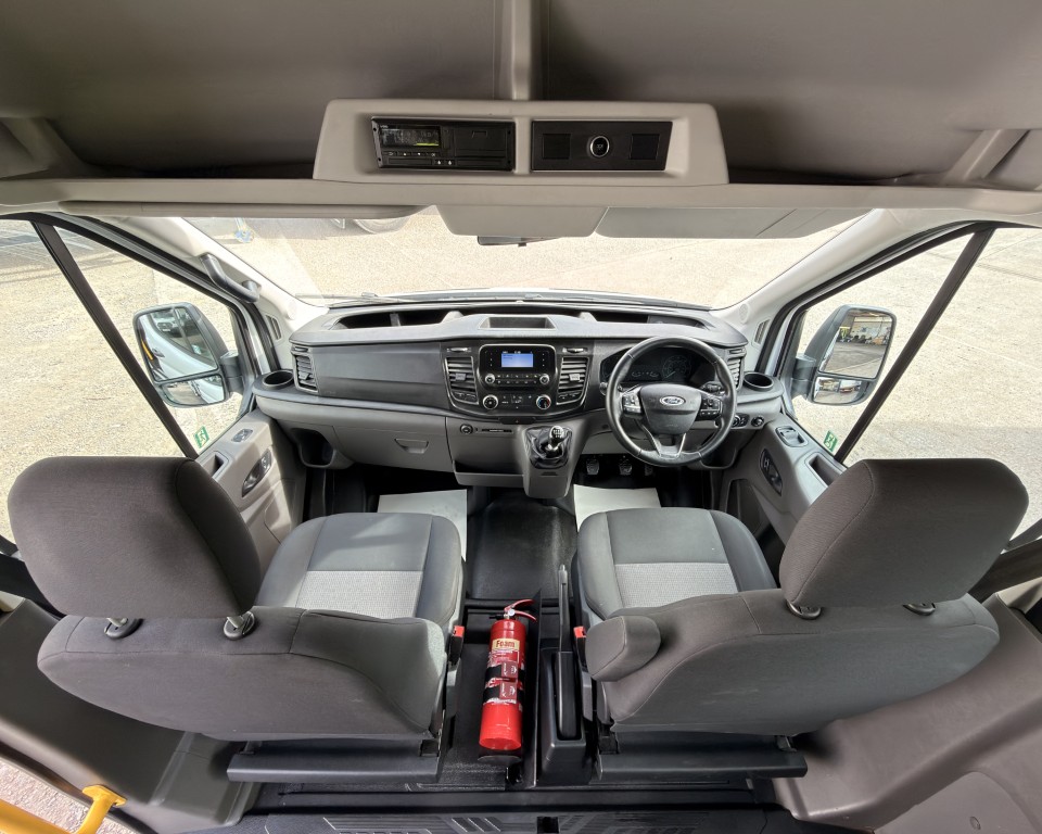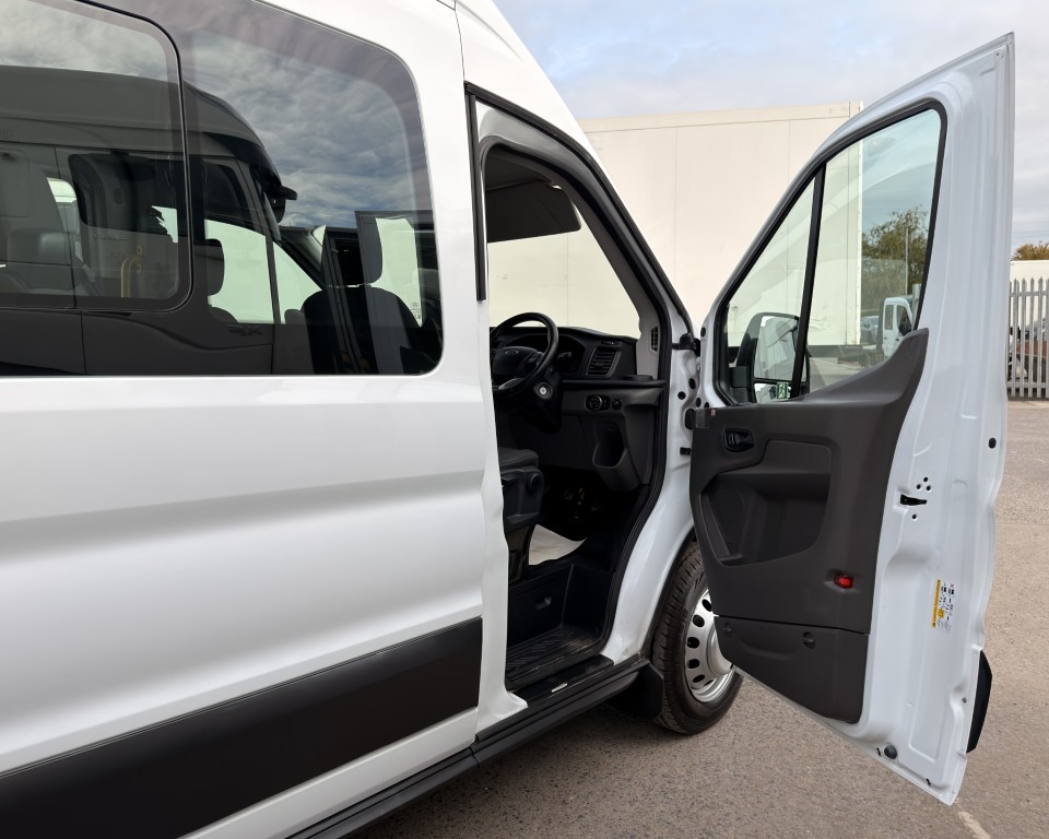 2019 (69) Ford Transit 2.0 460 EcoBlue Trend Minibus L4H3 17 Seat Minibus (PSV), 2.0 Diesel engine with a 6-speed manual gearbox, Tow Bar, Digital tachograph, PSV MOT, 17-seats, Nearside sliding passenger door with retracting step, Internal passenger overhead luggage storage, Automatic headlights, Electric side mirrors and front windows, Remote central locking, Cruise control with speed limiter, Bluetooth connectivity with handsfree calling and steering wheel controls, Trip computer.