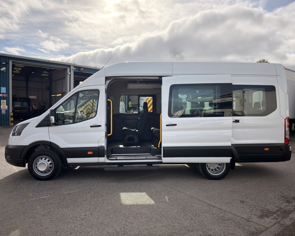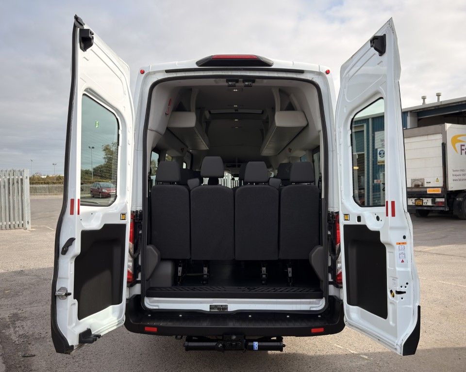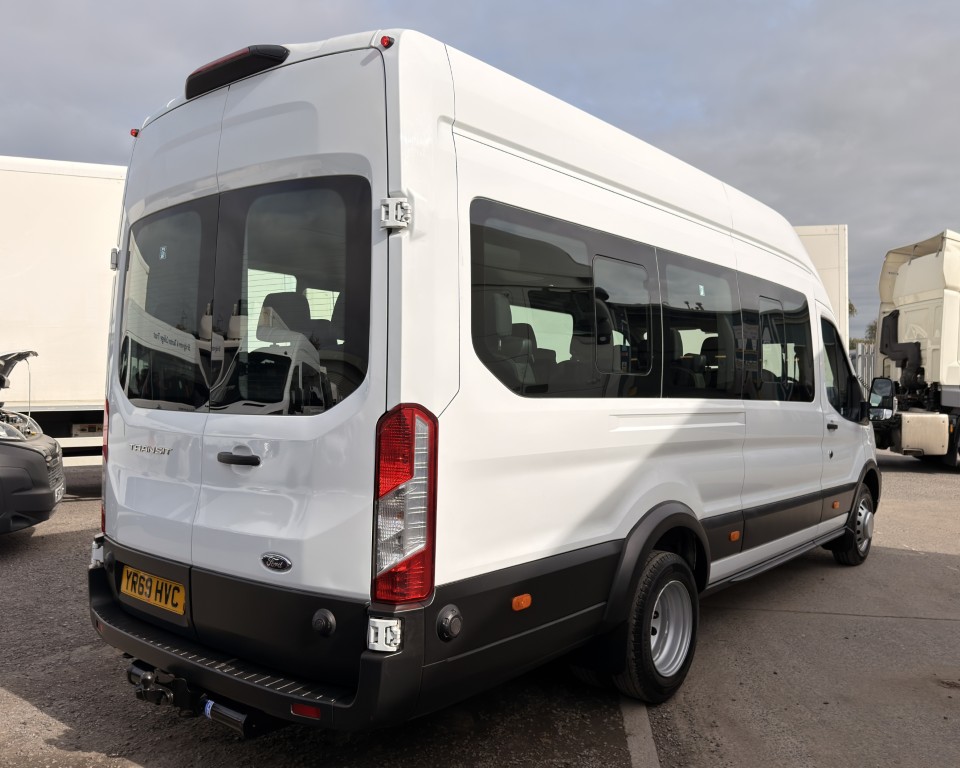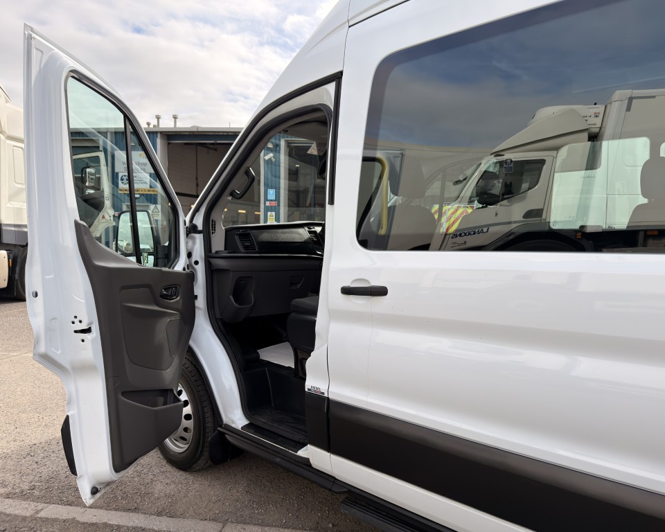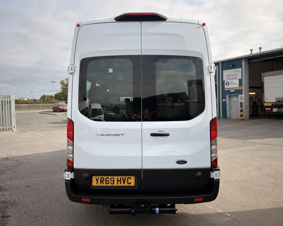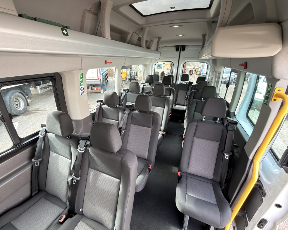 2019 (69) Ford Transit 2.0 460 EcoBlue Trend Minibus L4H3 17 Seat Minibus (PSV), 2.0 Diesel engine with a 6-speed manual gearbox, Tow Bar, Digital tachograph, PSV MOT, 17-seats, Nearside sliding passenger door with retracting step, Internal passenger overhead luggage storage, Automatic headlights, Electric side mirrors and front windows, Remote central locking, Cruise control with speed limiter, Bluetooth connectivity with handsfree calling and steering wheel controls, Trip computer.