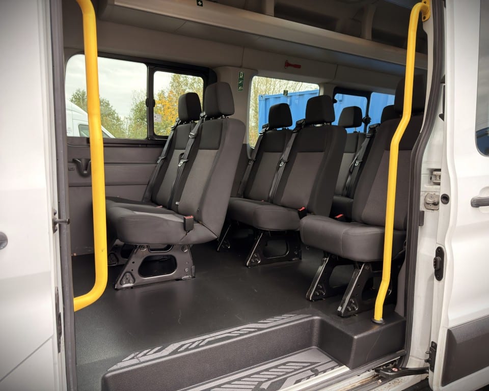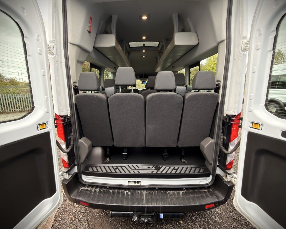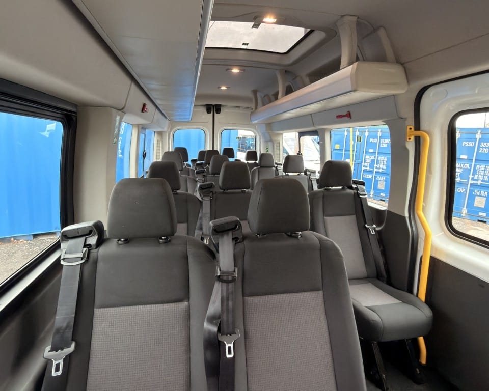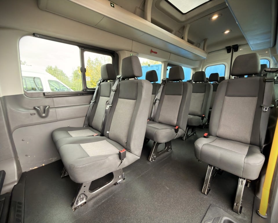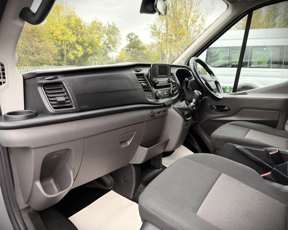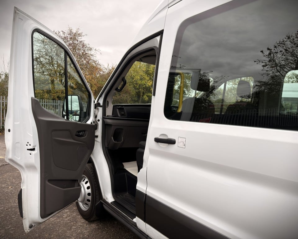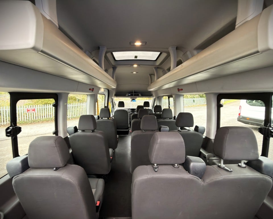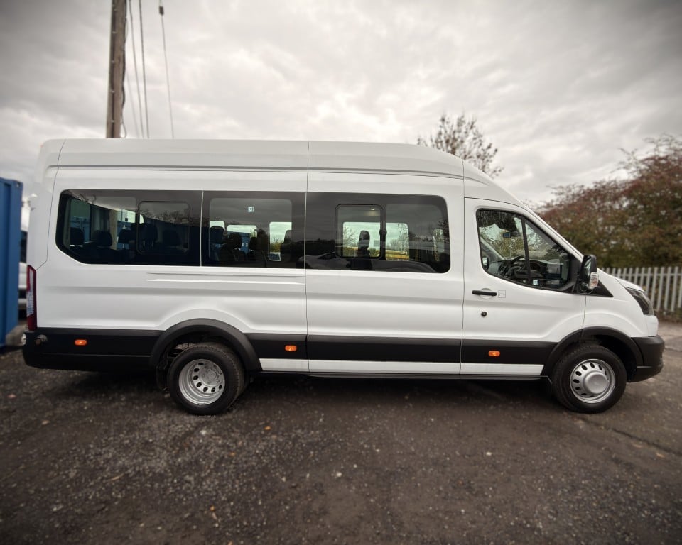 2019 (OGW) Ford Transit 2.0 460 EcoBlue Trend RWD L4H3 17 Seat Minibus (PSV), 2 litre diesel engine with a 6-speed manual gearbox, Digital tachograph, PSV specification, 17-seats (including driver), Cruise control with speed limiter, Tow bar, Passenger overhead luggage compartments, NS Sliding passenger door with retracting step, Automatic headlights, Electric side mirrors and windows, Remote central locking, DAB radio, Bluetooth with handsfree calling and steering wheel controls, Trip computer.