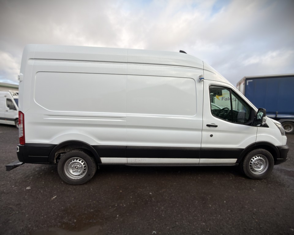 2022 (22) Ford Transit 2.0 350 EcoBlue Leader L3H3 Dual Temp Freezer Van, GAH fridge engine, Movable central bulkhead for frozen and chilled goods, Single phase electrical standby, Insulated rear barn doors, Insulated NS slab loading door, In-cab temperature control, Safe-T-Bar rear step, 3-seats with a cloth interior, Driver arm rest, Bluetooth connectivity with handsfree calling and steering wheel controls, Trip computer.