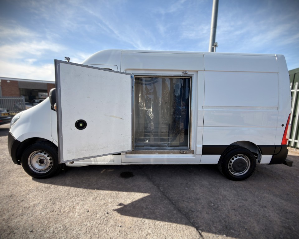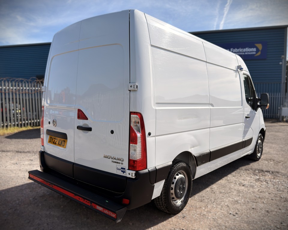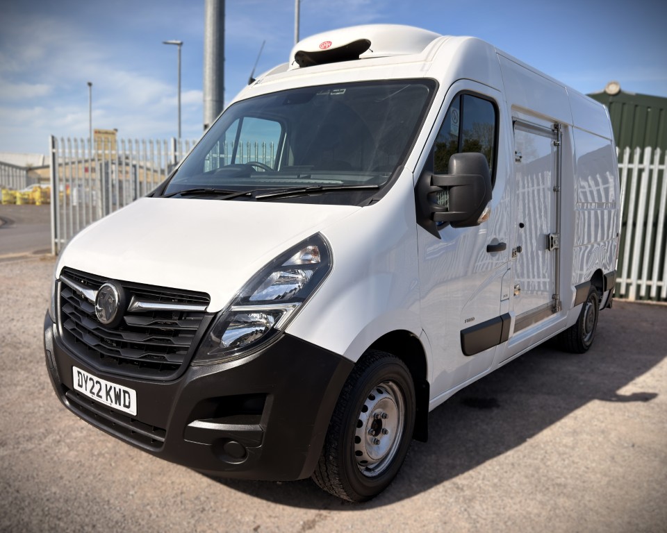 2022 (22) Vauxhall Movano 2.3 CDTi 3500 BiTurbo Edition L2H2 FWD Freezer Van (135ps), 2.3 Litre diesel engine with a 6-speed manual gearbox, GAH SRF351QTP fridge engine, Single evaporator, Movable centre bulkhead for dual temperature, Single phase electrical standby, Insulated NS slab loading door, Insulated rear barn doors, In-cab temperature recorder and printer, Rear Safe-T-Bar step, 3-seats with a cloth interior, Drivers arm rest, Electric side mirrors and windows, AM/FM radio, Remote central locking, Trip computer.