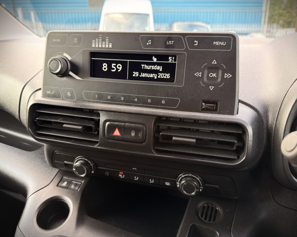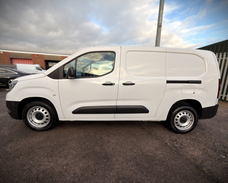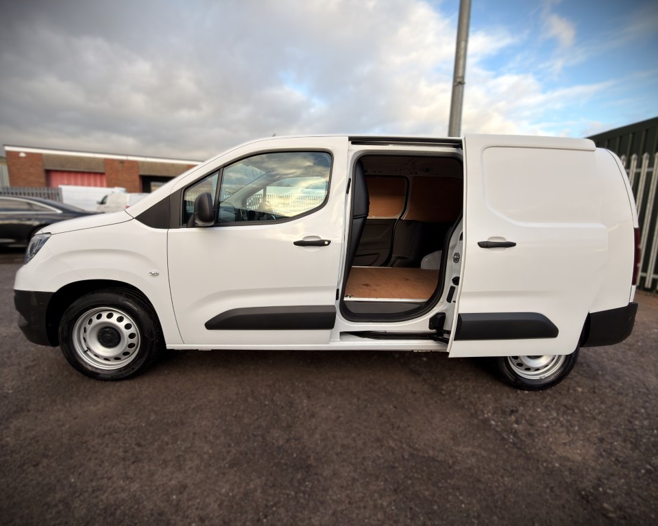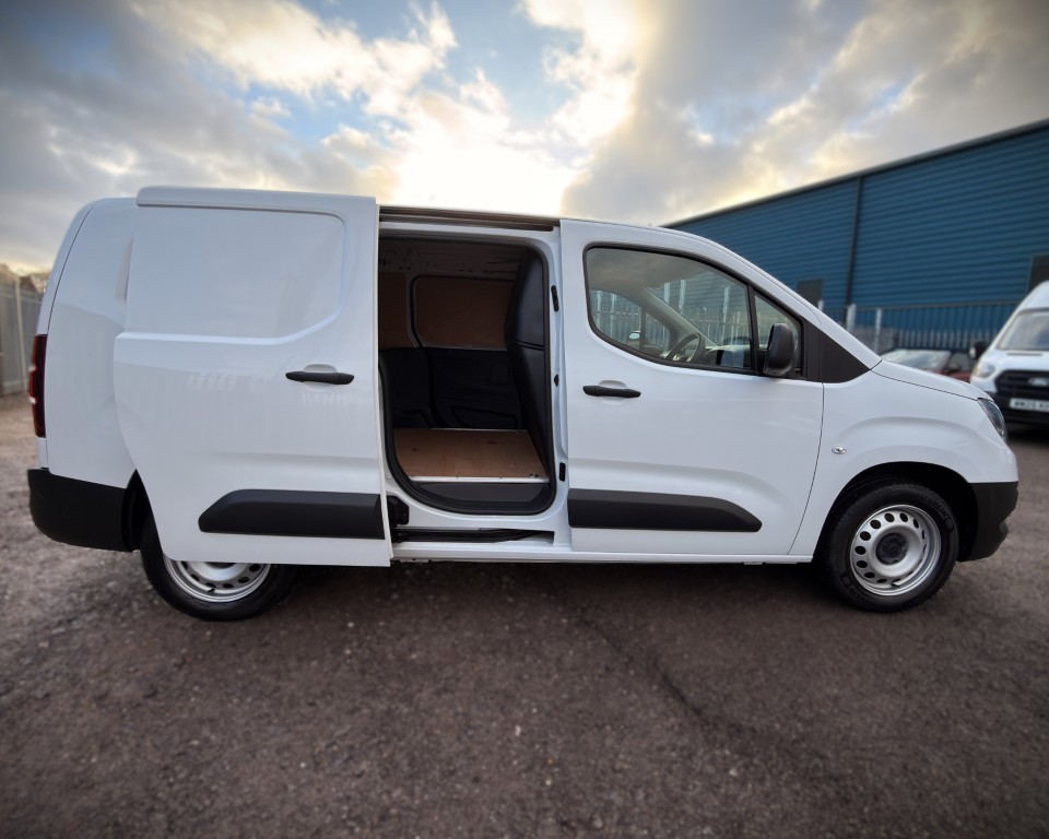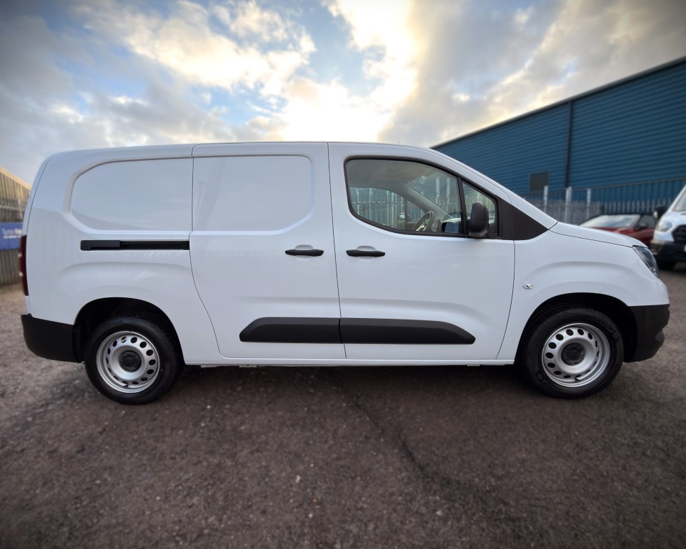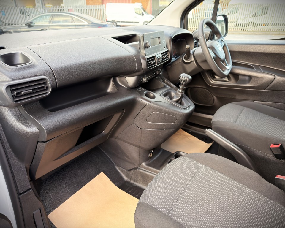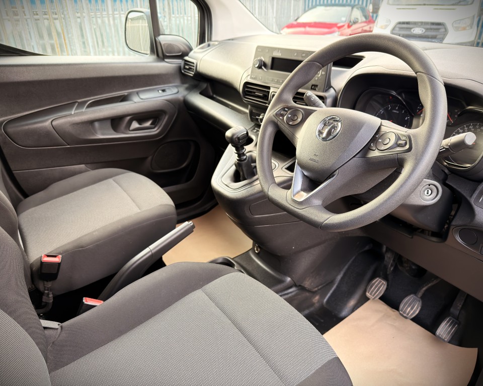 2022 (3210) Vauxhall Combo 1.5 Turbo D 2300 Dynamic L2H1 Panel Van (130ps), 1.5 litre diesel engine with a 6-speed manual gearbox, Air conditioning, Rear parking sensors, Cruise control and speed limiter, Bluetooth connectivity with handsfree calling and steering wheel controls, Electric side mirrors and windows, Remote central locking, Automatic headlights, Twin sliding doors, Ply-lining, VERY LOW MILEAGE, Trip computer.