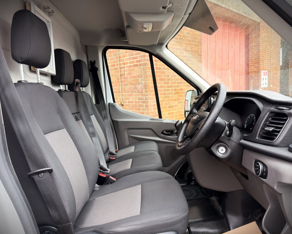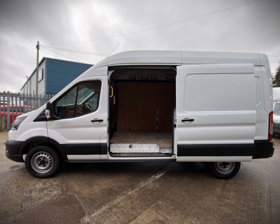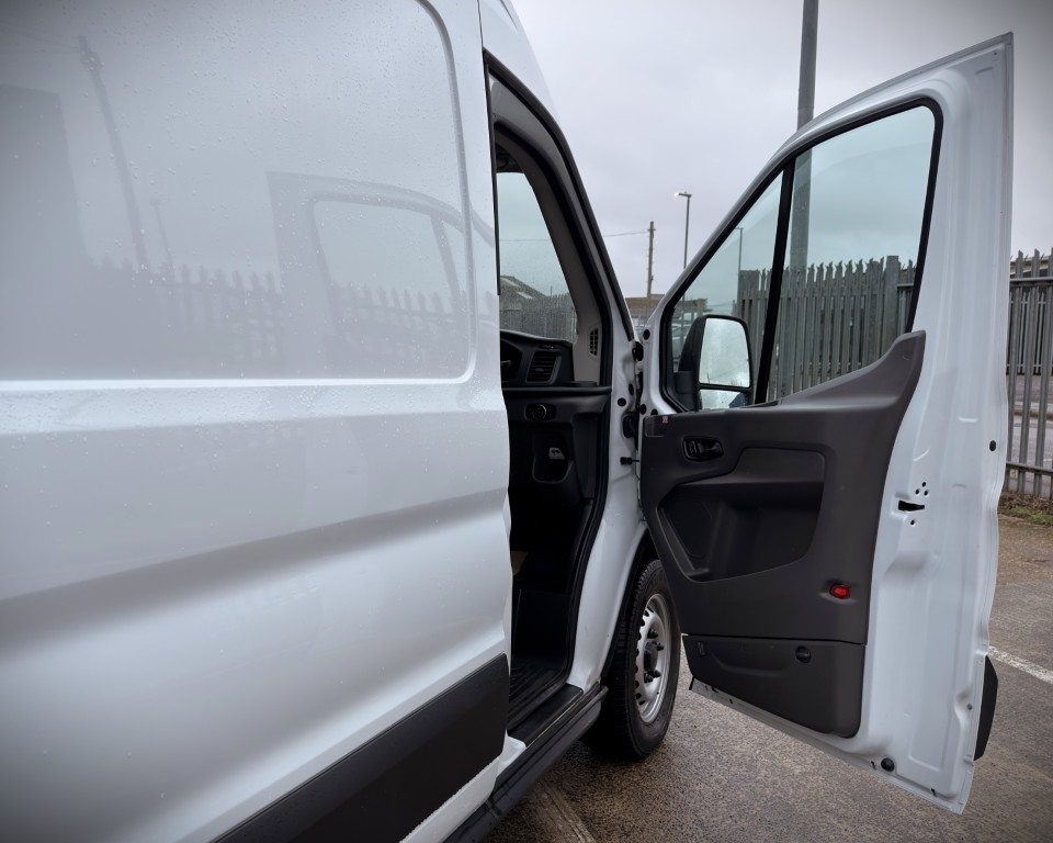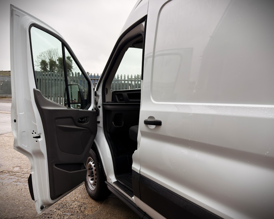 2022 (72) Ford Transit 2.0 350 EcoBlue Leader RWD L3H3 Panel Van (130ps), 2 litre diesel engine with a 6-speed manual gearbox, Air conditioning, Front and rear parking sensors, NS Sliding loading door, Electric windows, Remote central locking, Bluetooth with handsfree calling and steering wheel controls, Ply-lining, 3-seats with a cloth interior, Driver arm rest, Trip computer.