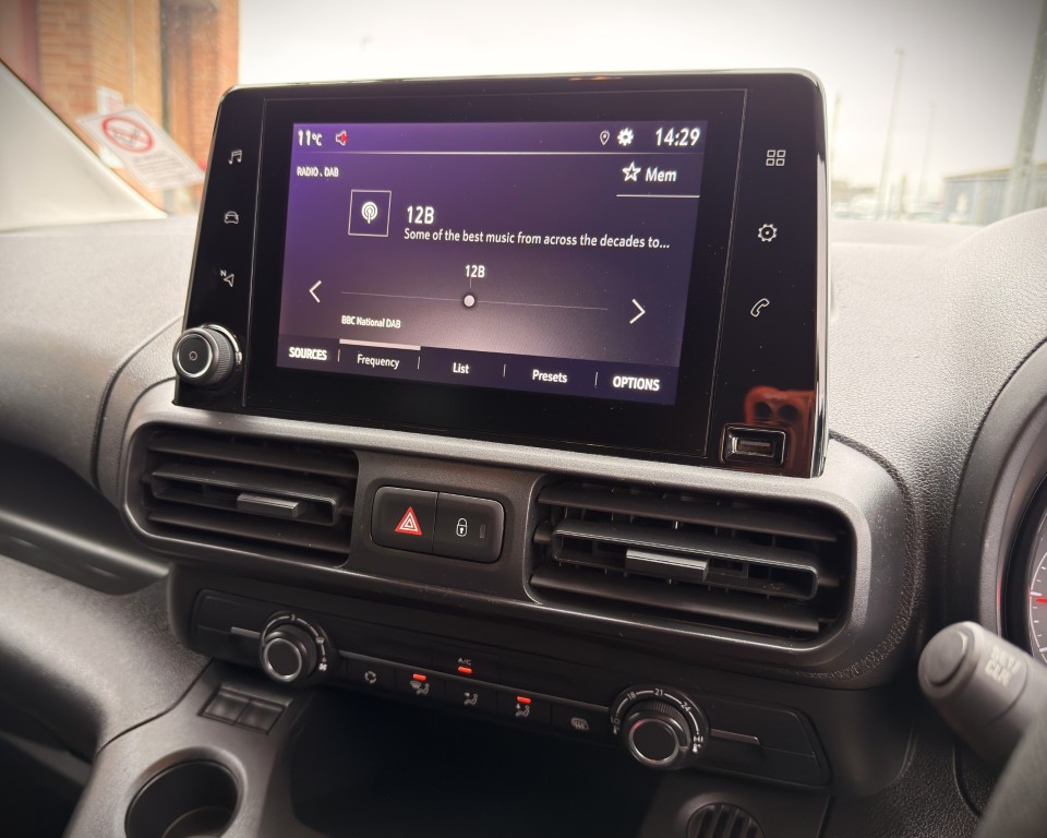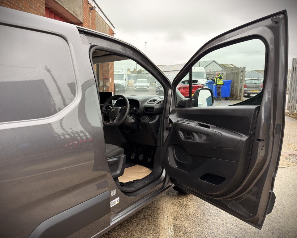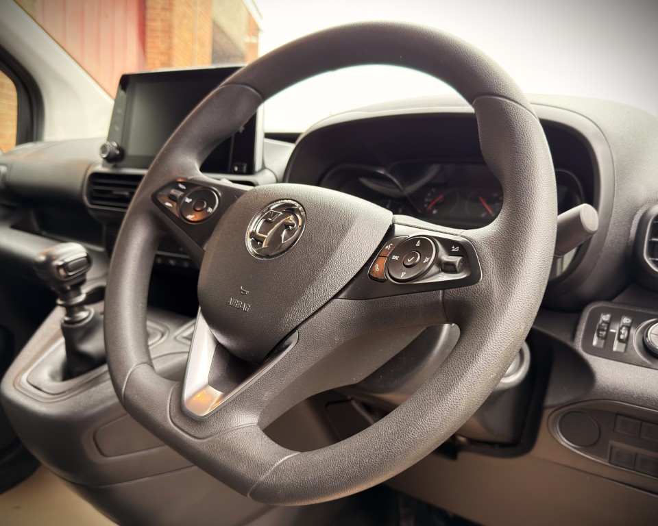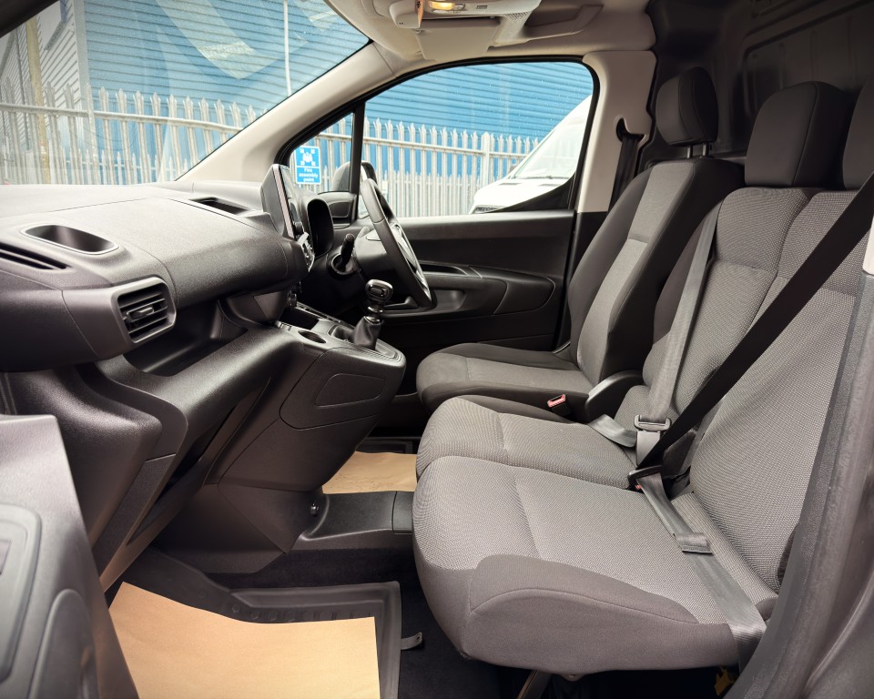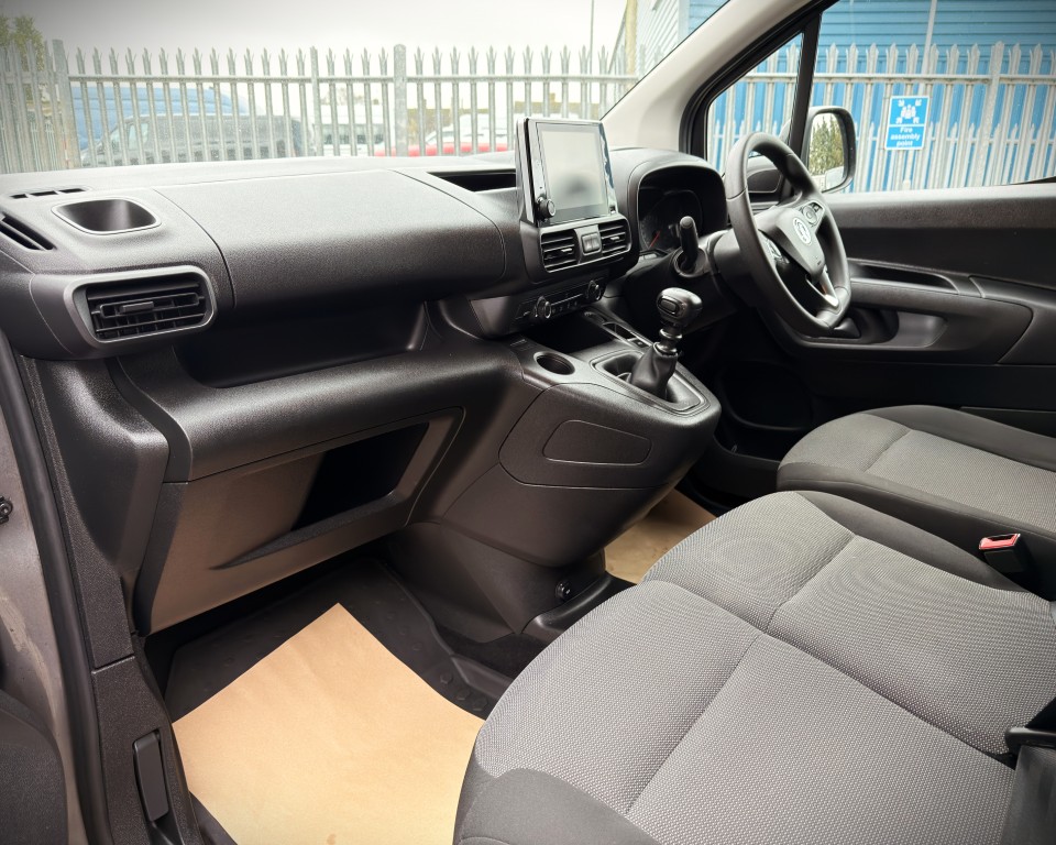 2022 (7844) Vauxhall Combo 1.5 Turbo Diesel 2000 Sportive L1H1 Panel Van, 1.5 litre diesel engine with a 6-speed manual gearbox, Air conditioning, Rear parking sensors, Cruise control with speed limiter, DAB radio, Sat Nav, Touch screen centre console, Electronic handbrake, Automatic headlights, Electric windows and side mirrors, Remote central locking, Sliding NS loading door, Ply-lining, 3-seats with a cloth interior, Trip computer.