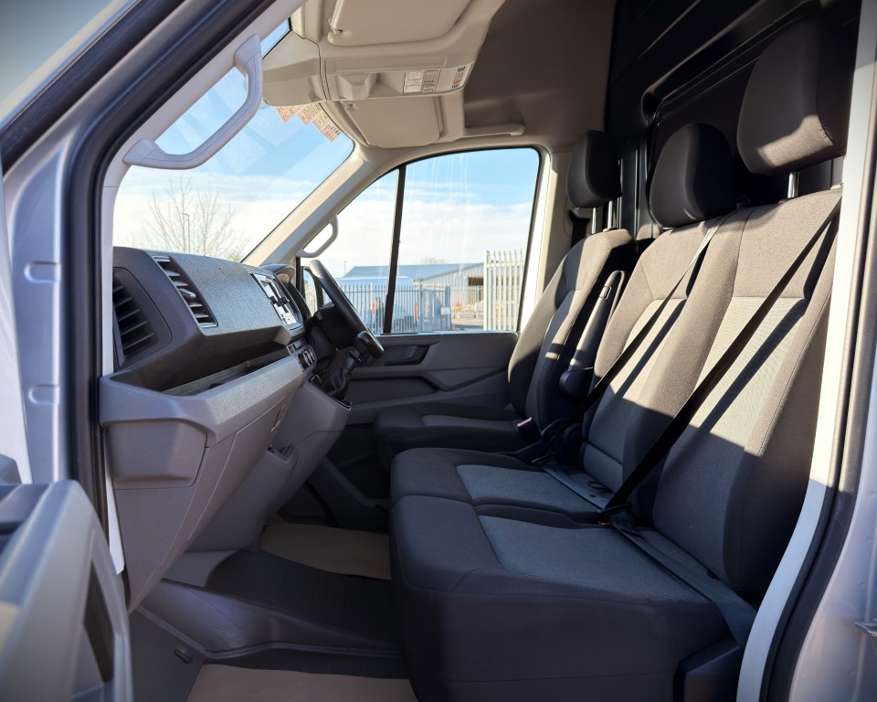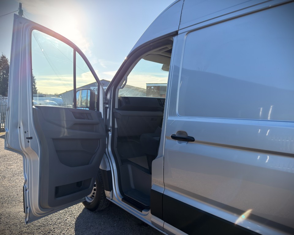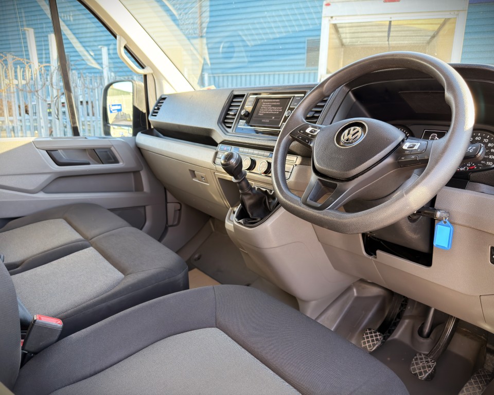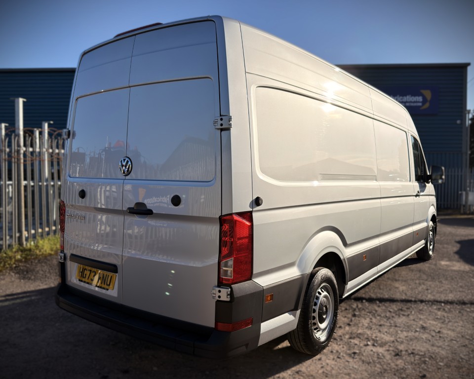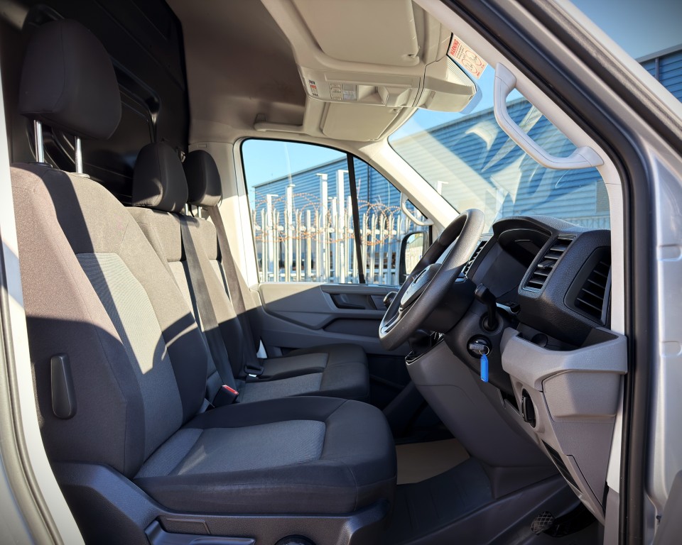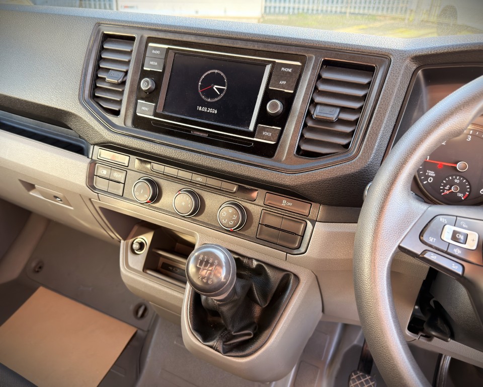 2024 (73) Volkswagen Crafter 2.0 TDI CR35 Trendline FWD LWB Panel Van (102ps), 2 litre diesel engine with a 6-speed manual gearbox, Touch screen centre console with DAB radio, Cruise control with speed limiter, Bluetooth connectivity with handsfree calling and steering wheel controls, Electric side mirrors and windows, Remote central locking, NS sliding loading door, Ply-lining, Rear barn doors, 3-seats with a cloth interior, Drivers arm rest, Trip computer.