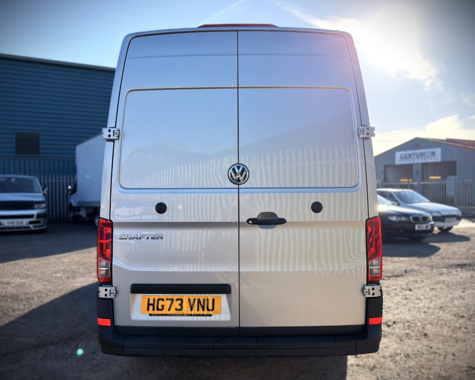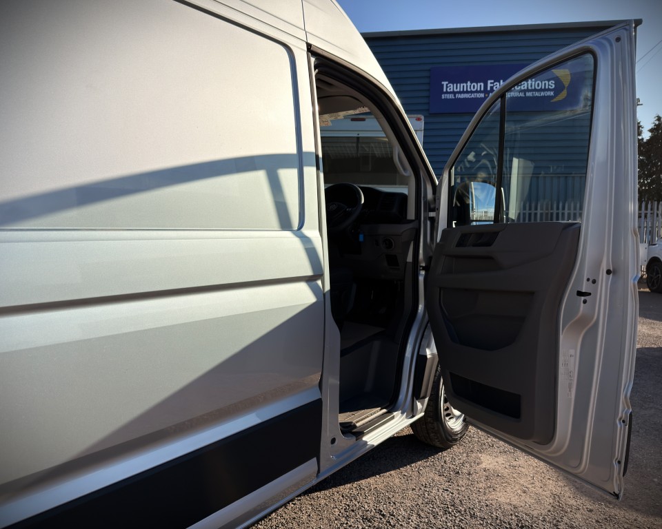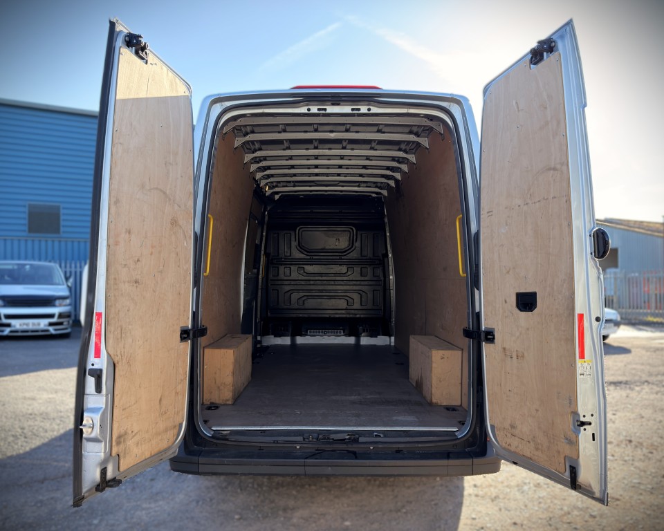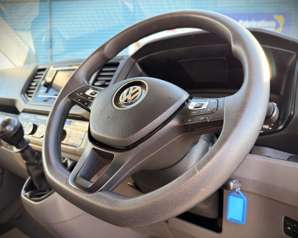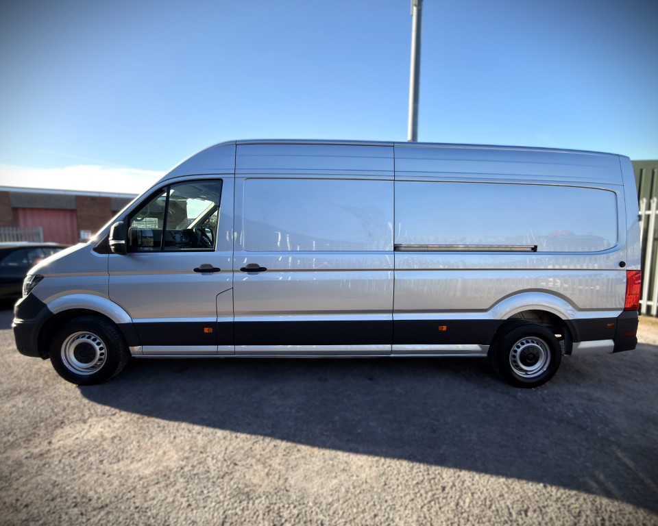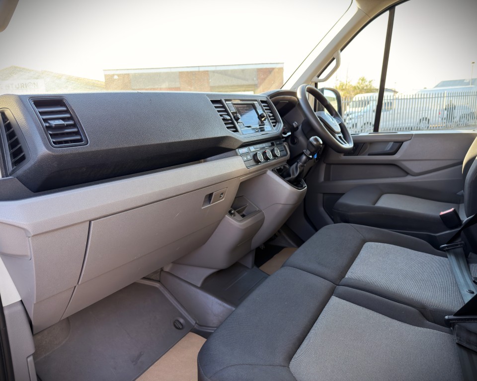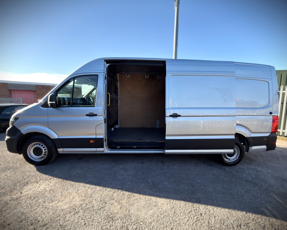 2024 (73) Volkswagen Crafter 2.0 TDI CR35 Trendline FWD LWB Panel Van (102ps), 2 litre diesel engine with a 6-speed manual gearbox, Touch screen centre console with DAB radio, Cruise control with speed limiter, Bluetooth connectivity with handsfree calling and steering wheel controls, Electric side mirrors and windows, Remote central locking, NS sliding loading door, Ply-lining, Rear barn doors, 3-seats with a cloth interior, Drivers arm rest, Trip computer.