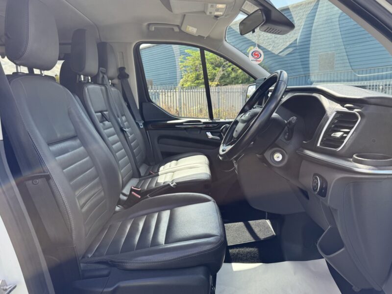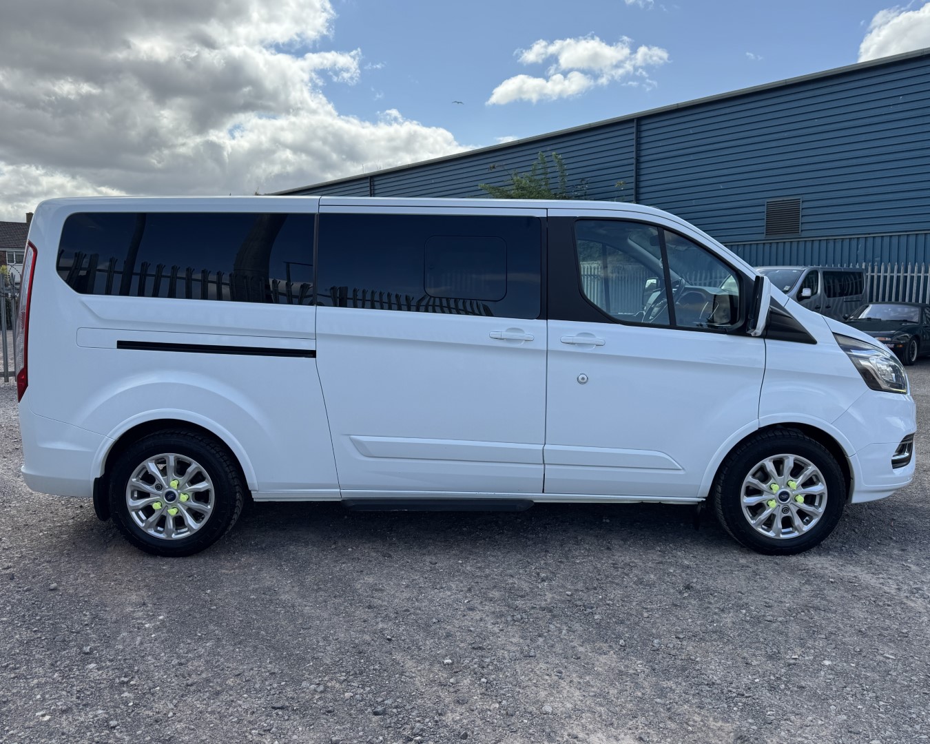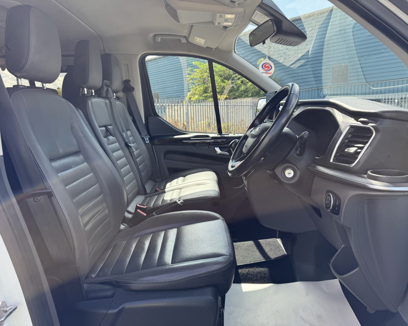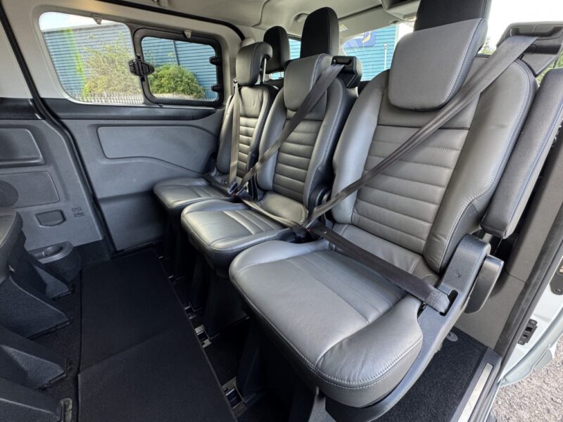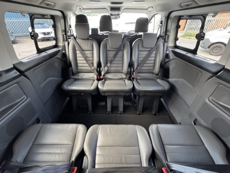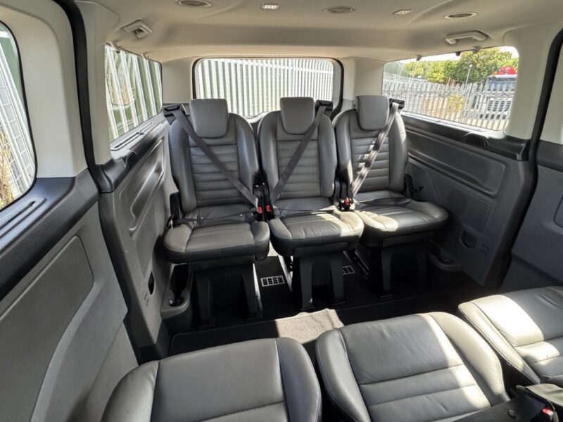 2019 (19) Ford Tourneo Custom 2.0 310 EcoBlue Titanium L2 9 Seat MPV (130ps), 2.0 litre diesel engine with a 6-speed manual gearbox, Front and rear parking sensors, Air conditioning, Front heated seats, Full leather interior, Automatic headlights, Full electric folding side mirrors, Electric windows, Remote central locking, DAB radio, Touchscreen centre console, Sat Nav, Bluetooth with handsfree calling and steering wheel controls, Cruise control with speed limiter, Twin sliding passenger doors, Tinted windows, Allow wheels, Removable and adjustable passenger seating, L2 with large boot space, Trip computer.