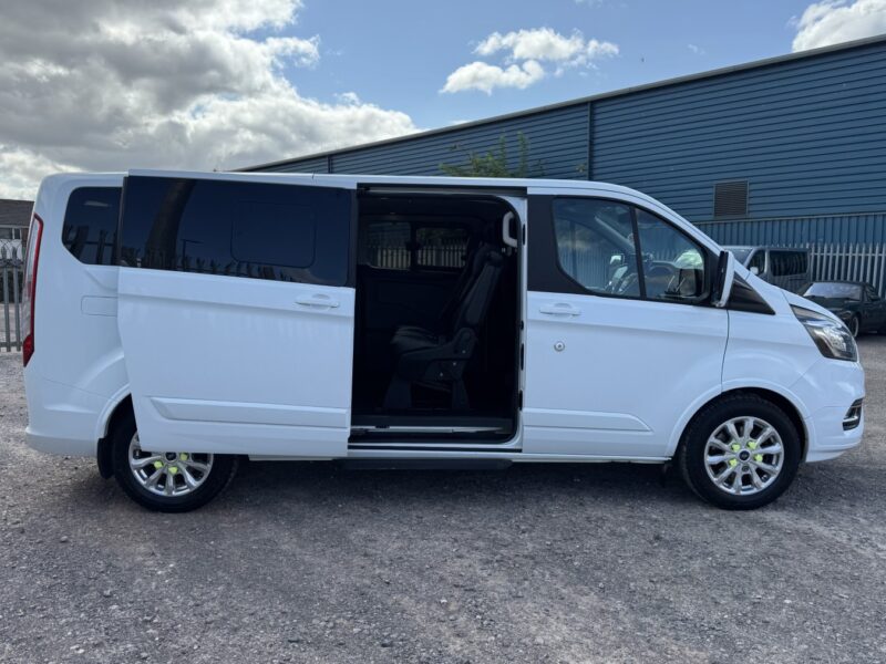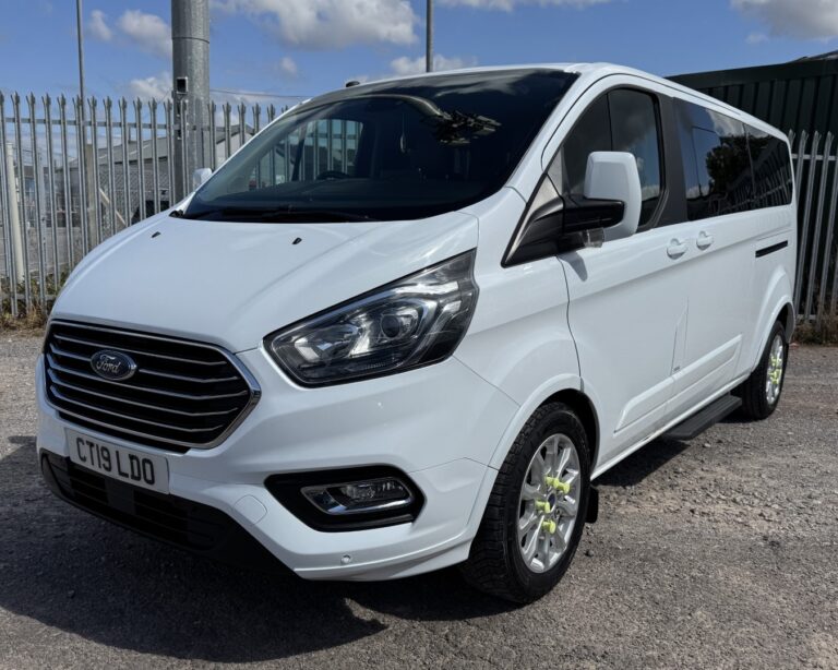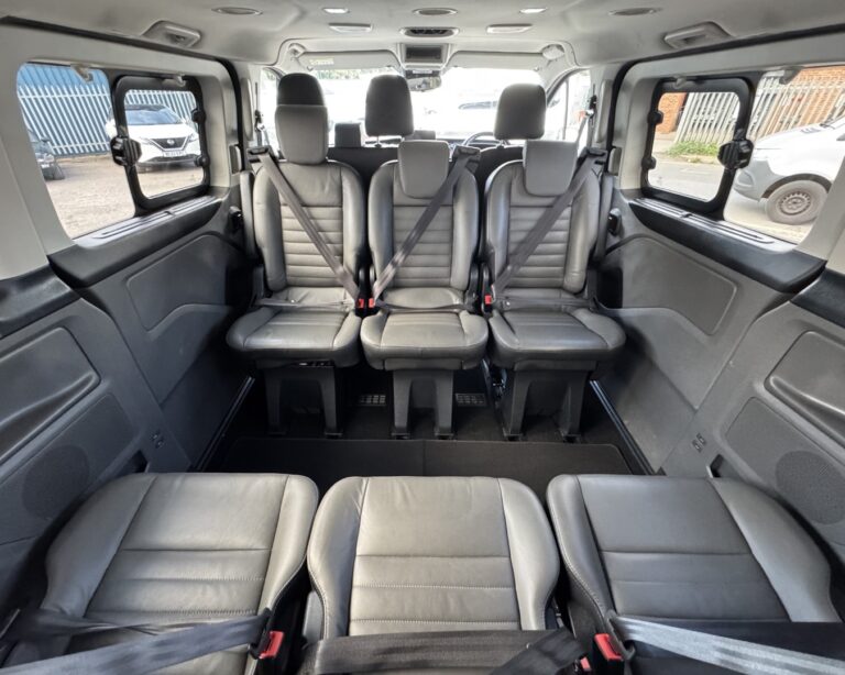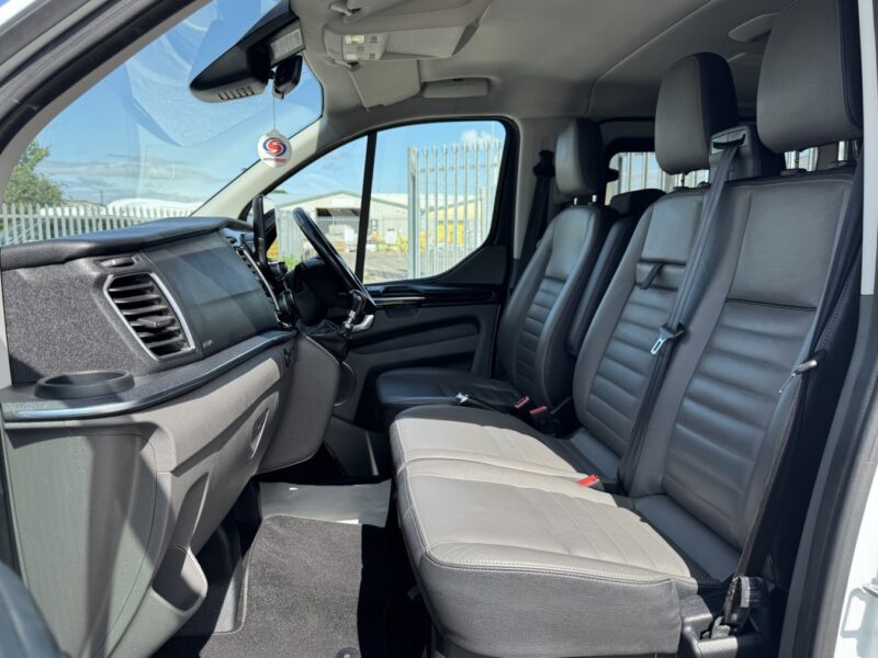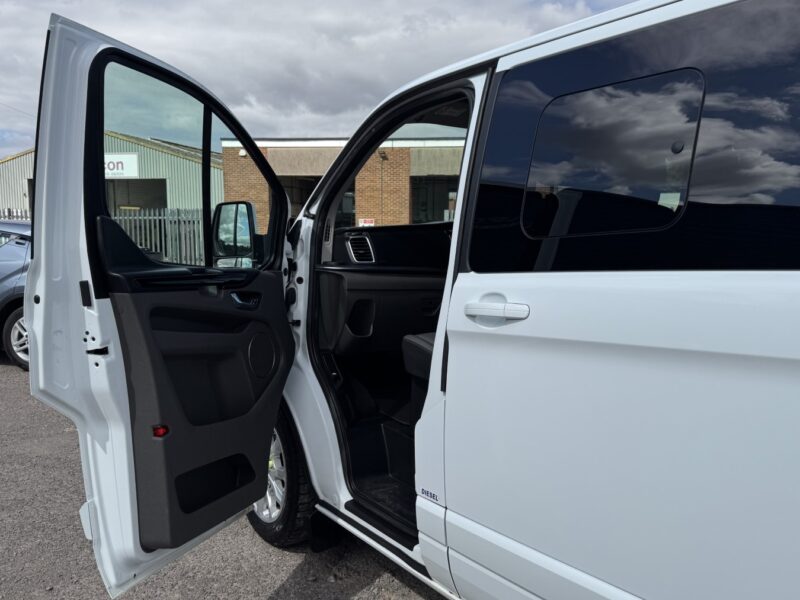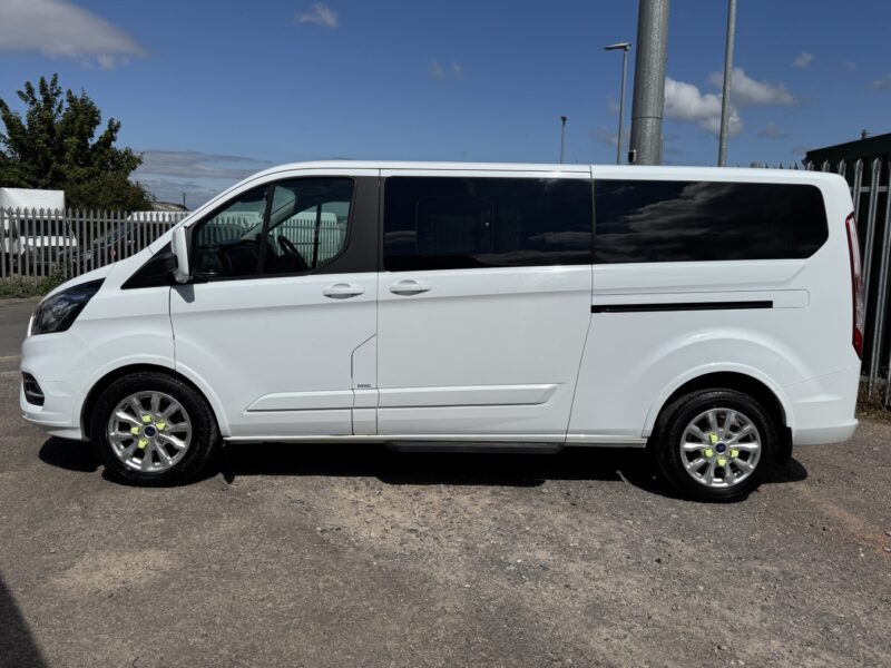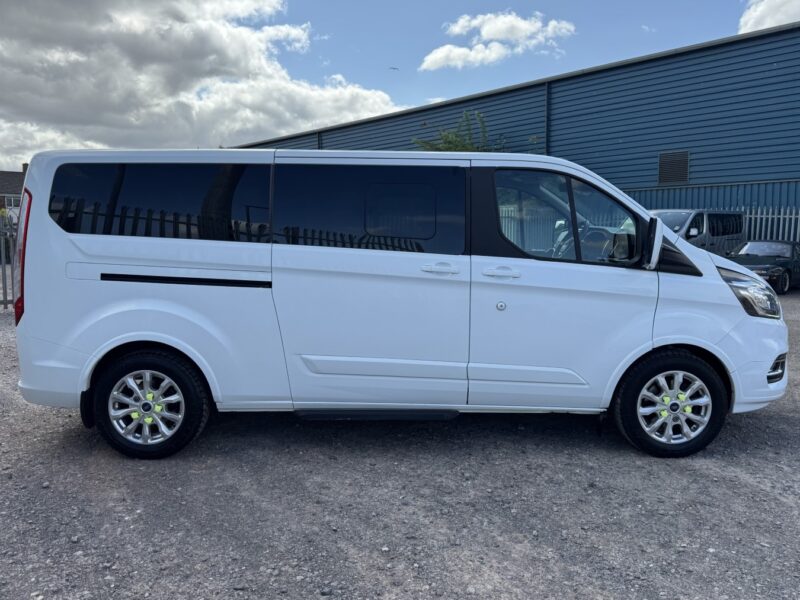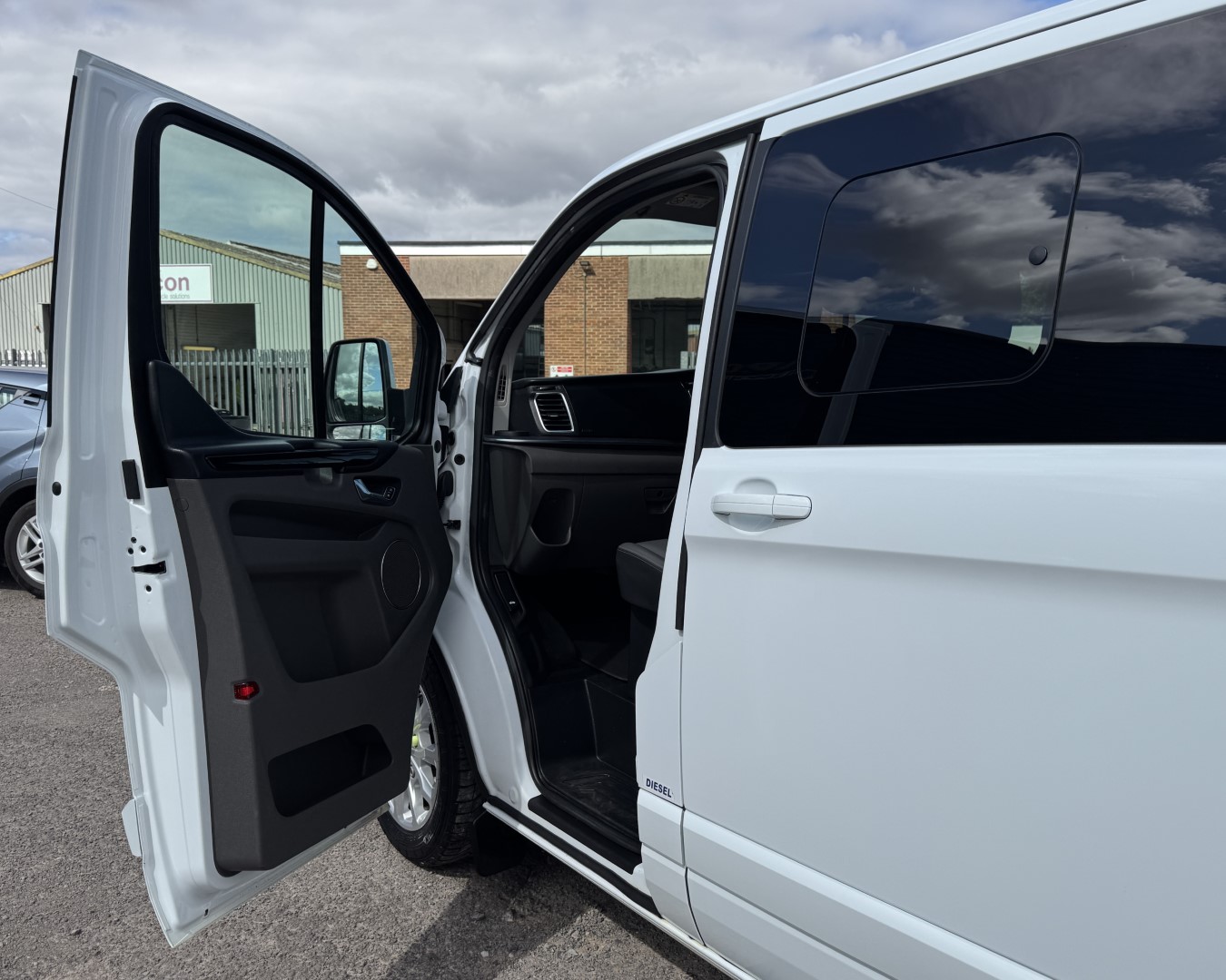 2019 (19) Ford Tourneo Custom 2.0 310 EcoBlue Titanium L2 9 Seat MPV (130ps), 2.0 litre diesel engine with a 6-speed manual gearbox, Front and rear parking sensors, Air conditioning, Front heated seats, Full leather interior, Automatic headlights, Full electric folding side mirrors, Electric windows, Remote central locking, DAB radio, Touchscreen centre console, Sat Nav, Bluetooth with handsfree calling and steering wheel controls, Cruise control with speed limiter, Twin sliding passenger doors, Tinted windows, Allow wheels, Removable and adjustable passenger seating, L2 with large boot space, Trip computer.