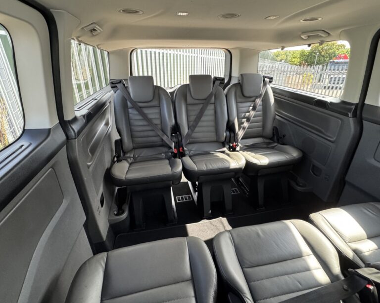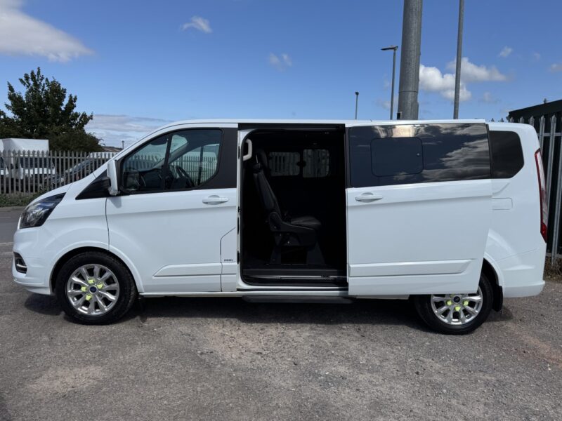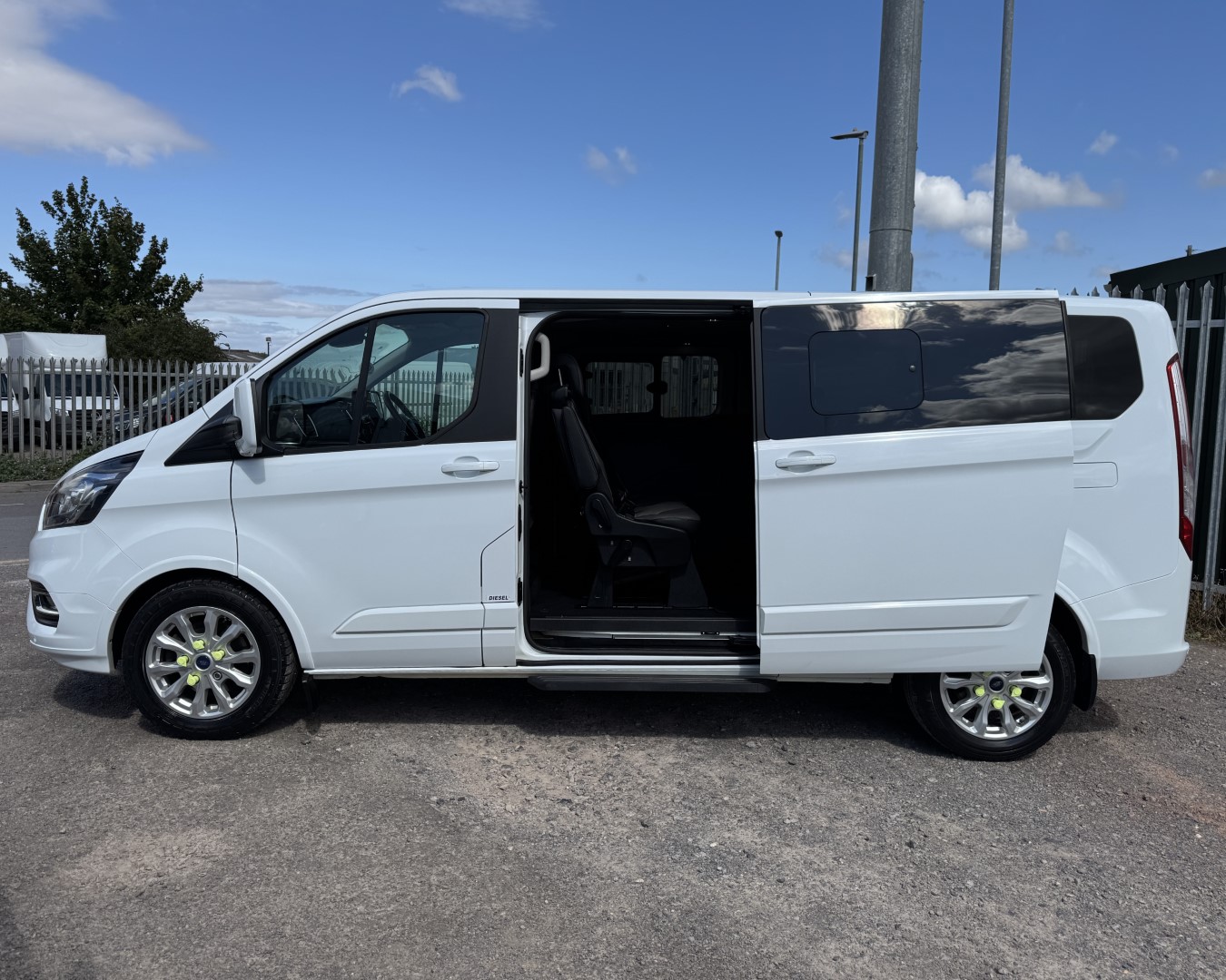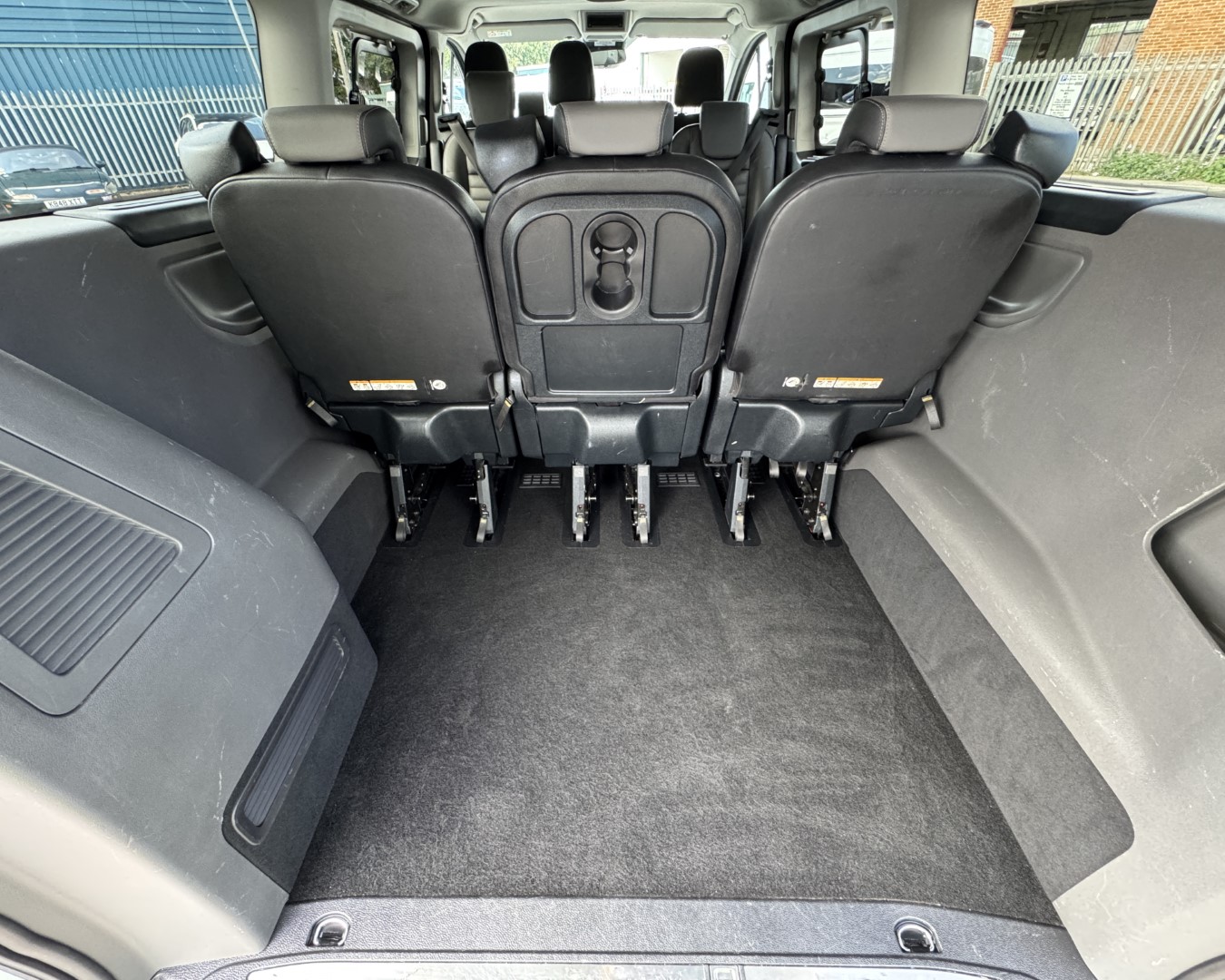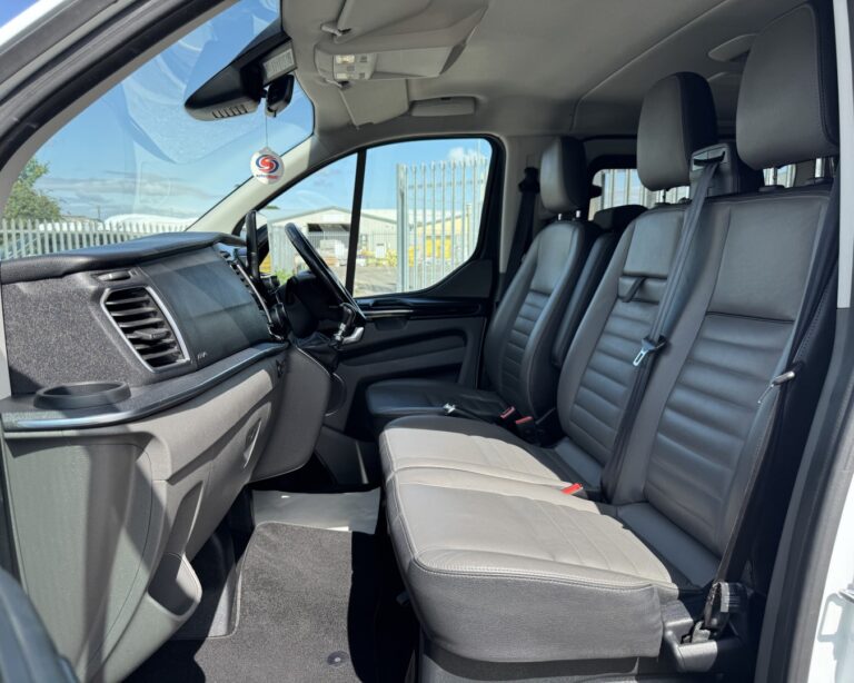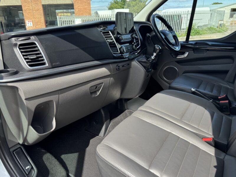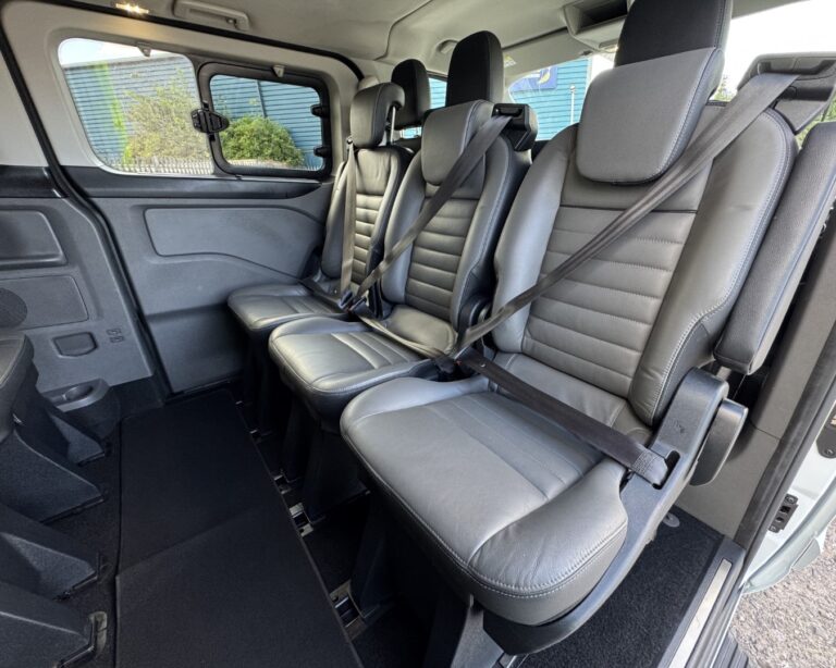 2019 (19) Ford Tourneo Custom 2.0 310 EcoBlue Titanium L2 9 Seat MPV (130ps), 2.0 litre diesel engine with a 6-speed manual gearbox, Front and rear parking sensors, Air conditioning, Front heated seats, Full leather interior, Automatic headlights, Full electric folding side mirrors, Electric windows, Remote central locking, DAB radio, Touchscreen centre console, Sat Nav, Bluetooth with handsfree calling and steering wheel controls, Cruise control with speed limiter, Twin sliding passenger doors, Tinted windows, Allow wheels, Removable and adjustable passenger seating, L2 with large boot space, Trip computer.