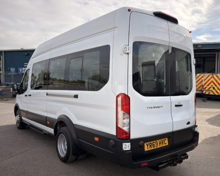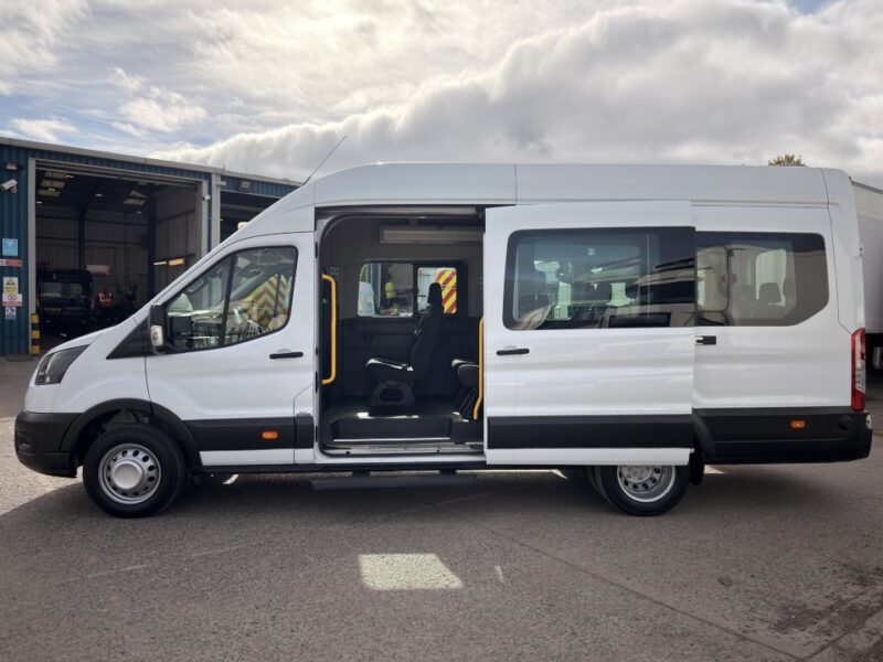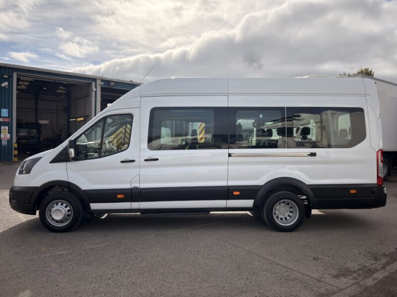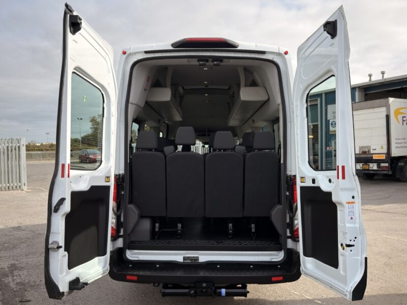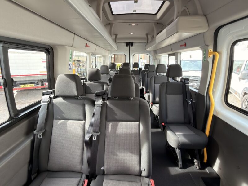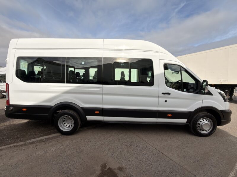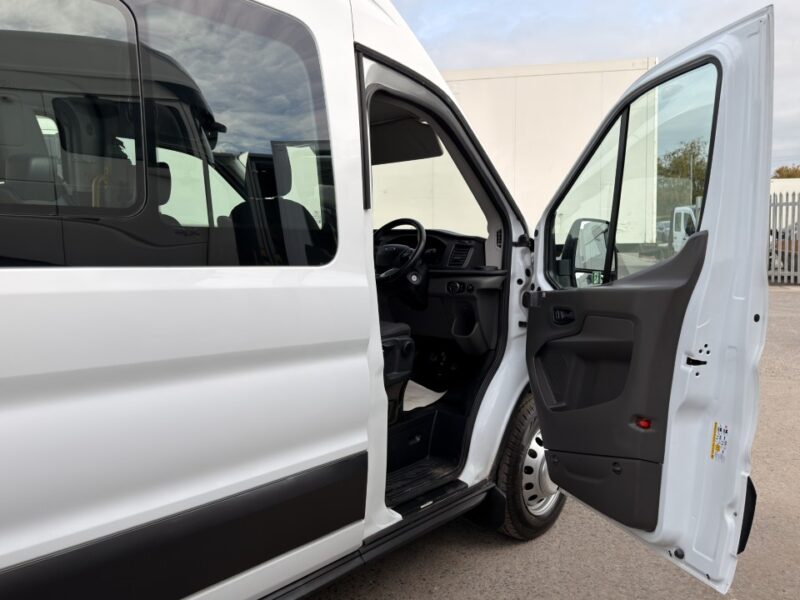 2019 (69) Ford Transit 2.0 460 EcoBlue Trend Minibus L4H3 17 Seat Minibus (PSV), 2.0 Diesel engine with a 6-speed manual gearbox, Tow Bar, Digital tachograph, PSV MOT, 17-seats, Nearside sliding passenger door with retracting step, Internal passenger overhead luggage storage, Automatic headlights, Electric side mirrors and front windows, Remote central locking, Cruise control with speed limiter, Bluetooth connectivity with handsfree calling and steering wheel controls, Trip computer.