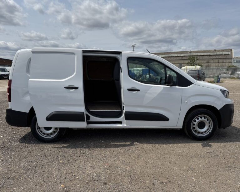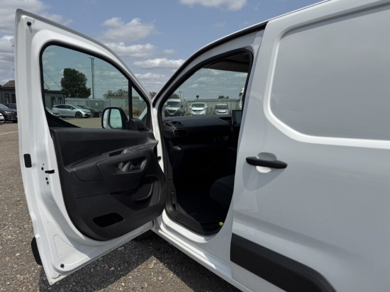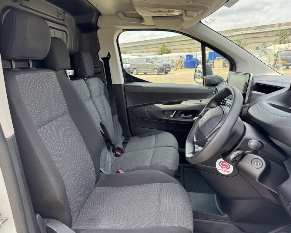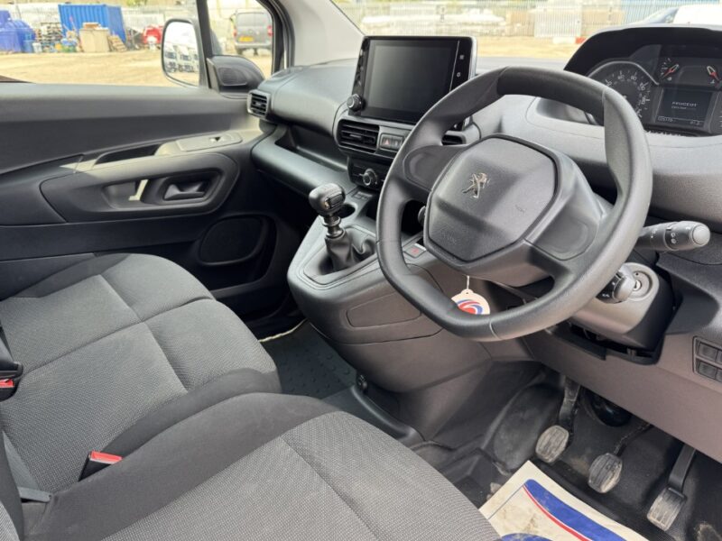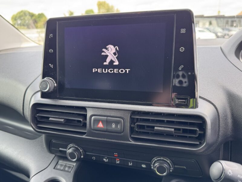 2022 (72) Peugeot Partner 1.5 BlueHDI 950 Proffesional Premium+ LWB Panel Van (100ps), 1.5 Litre diesel engine with 6-speed manual gearbox, Air conditioning, Rear parking sensors, DAB radio, Touchscreen centre console with Sat Nav, Bluetooth connectivity with handsfree calling, Electric side mirrors and windows, Remote central locking, NS & OF sliding loading doors, Ply-lining, 3-seats with a cloth interior, Trip computer.
